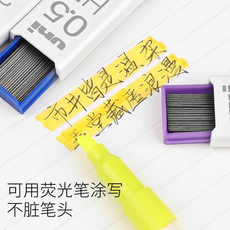 日本UNI三菱铅芯0.3/0.5/0.7/0.9特硬自动铅笔芯不易断防蹭脏防污
