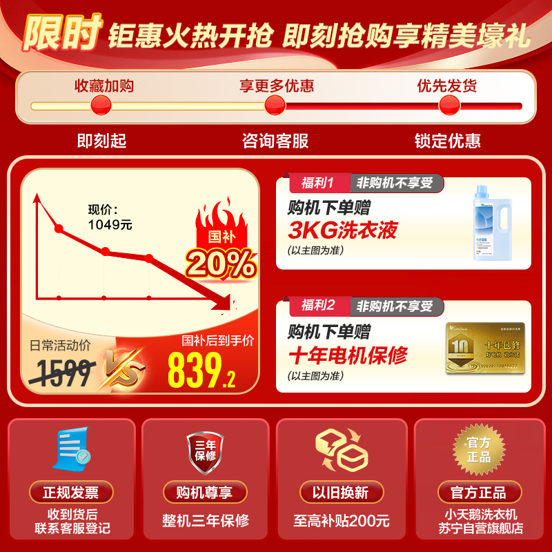 美的(Midea)滚筒洗衣机全自动10公斤超薄机身巴氏除菌变频蒸汽桑拿羊毛洗简尚系列MG100V11FPR家电国家补贴