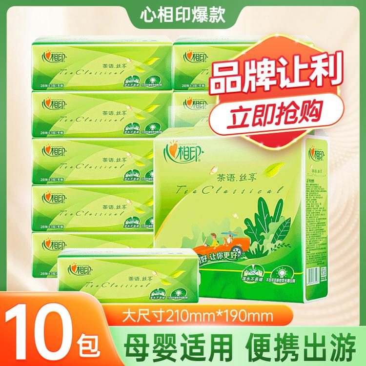 心相印 【10包】家用抽纸便携出游面巾纸手纸擦餐巾纸实惠装卫生纸
