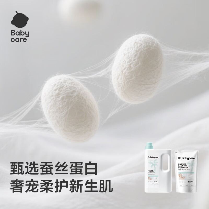 babycare婴儿宝宝童椰香酵素洗衣液去污除菌蚕丝蛋白柔护清洁洗衣液1.8L