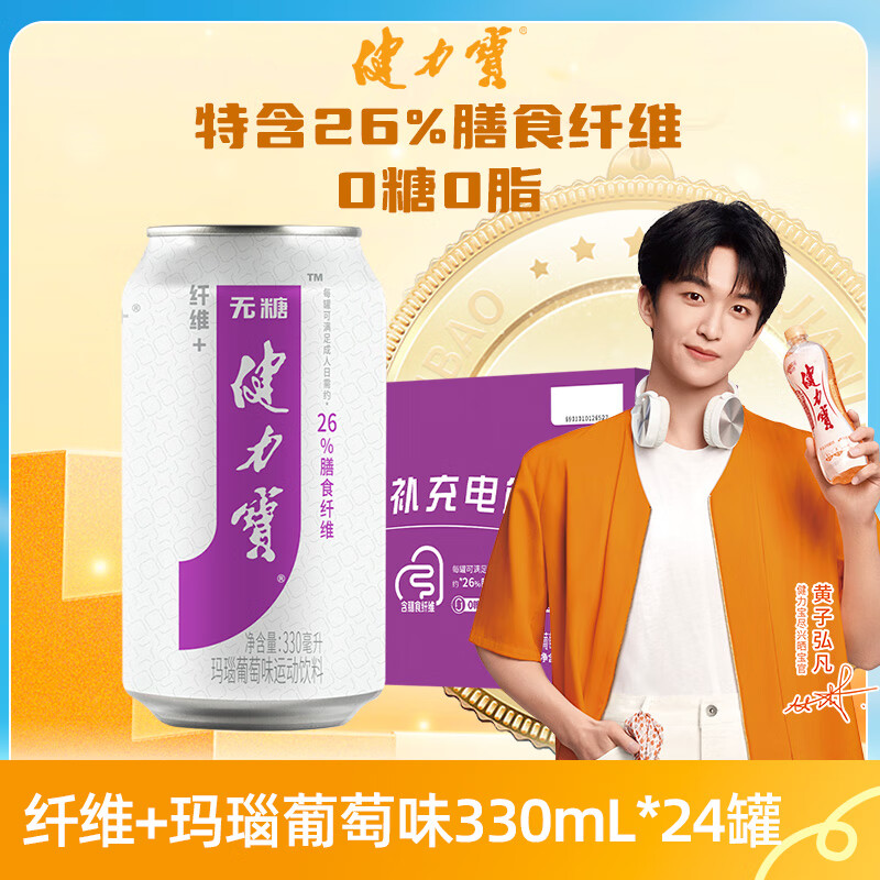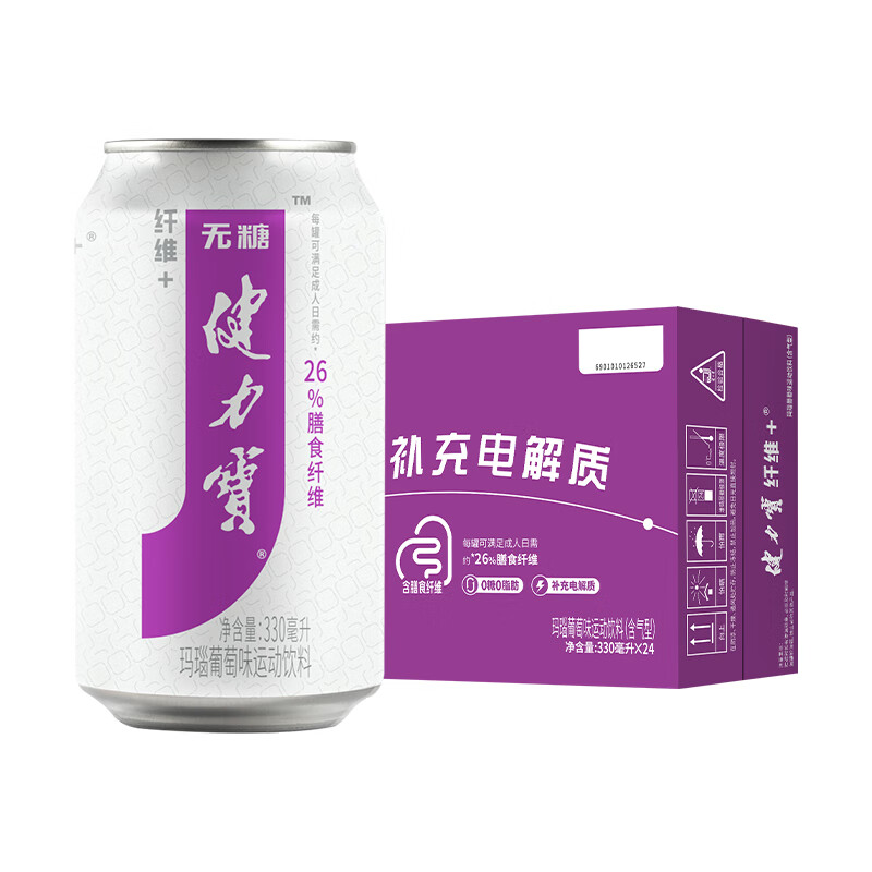 健力宝无糖0糖0脂含膳食纤维+葡萄味330ml*24罐补充电解质运动饮料汽水 【在售价】53.90元 【到手价】53.90元 下单链接:https://u.jd.com/YOBJNDT