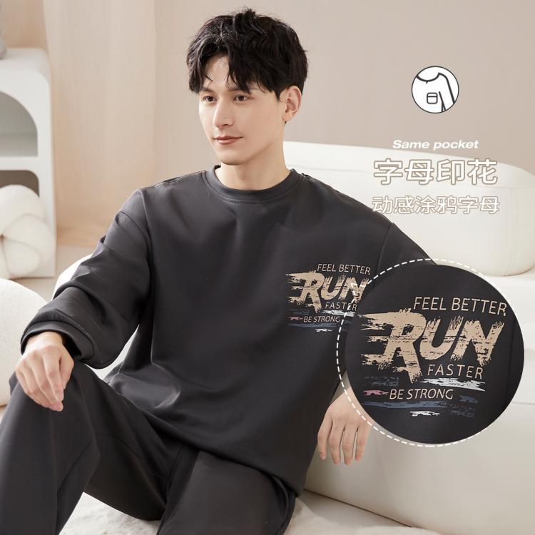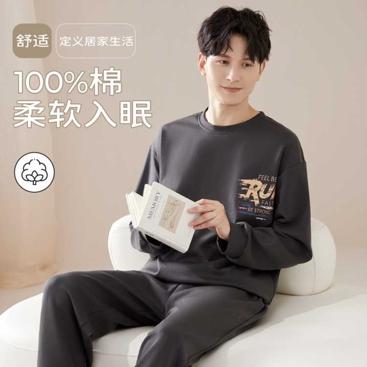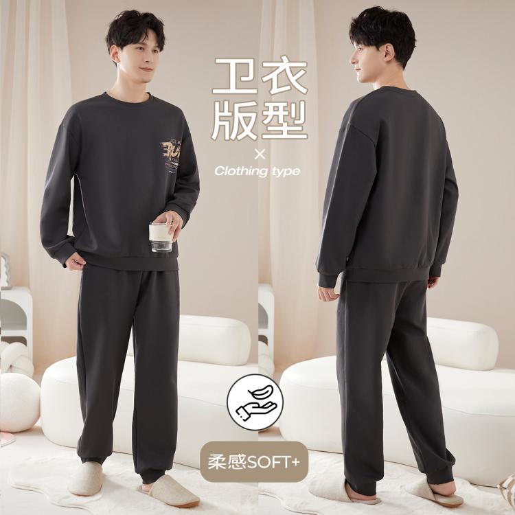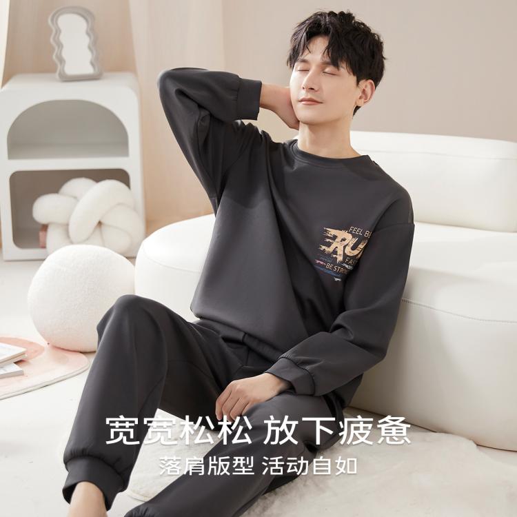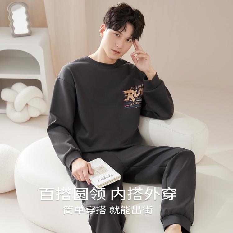 猫人 【零感棉柔】男士睡衣套装100%纯棉家居服秋季长袖套头外穿