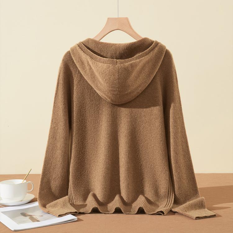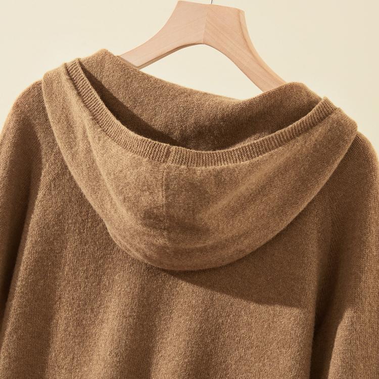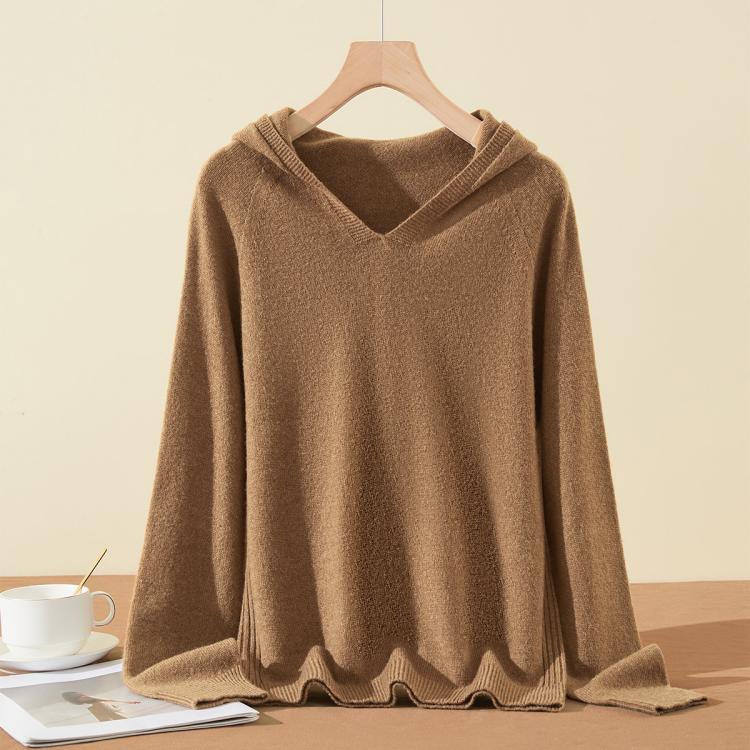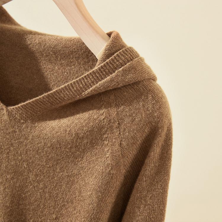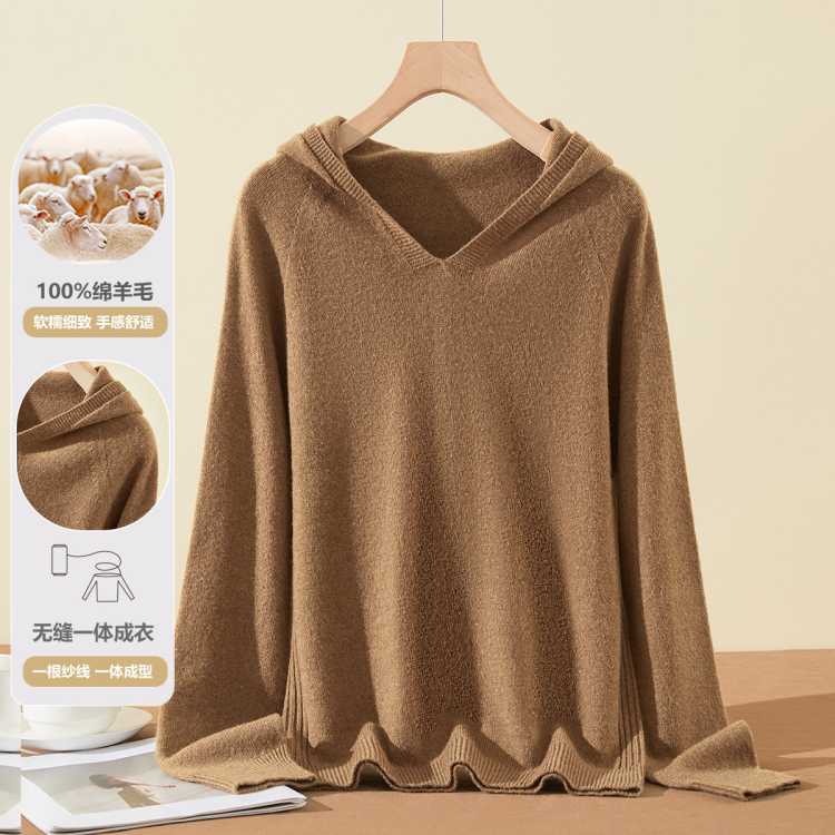 衣尚 【无缝100%绵羊毛】秋款纯色连帽羊毛衫女针织衫卫衣套衫毛衣