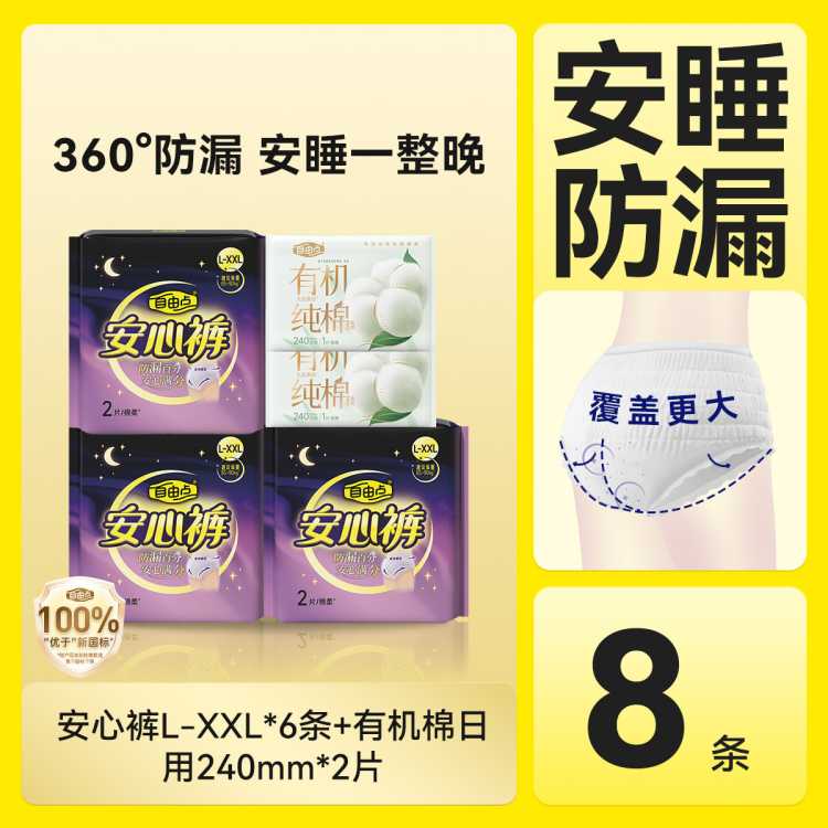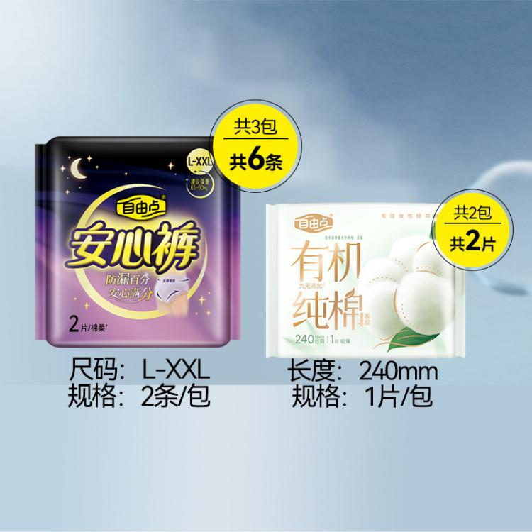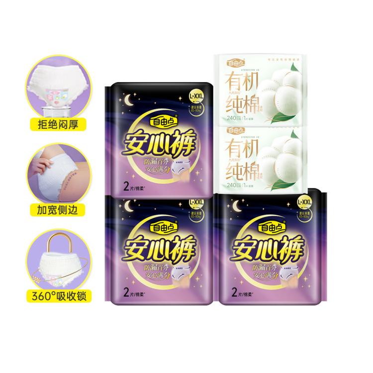 自由点 【新客试用】安心裤大码L~XXL6条+有机纯棉2片体验装超薄