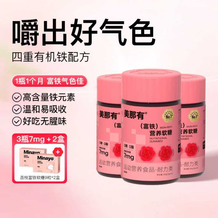 MINAYO 美那有富铁软糖女性姨妈期中老年人铁元素升级款荔枝味60粒/瓶