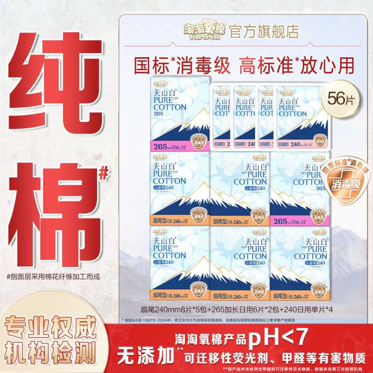 淘淘氧棉 【品牌直供】国标消毒级纯棉卫生巾38/56/63片