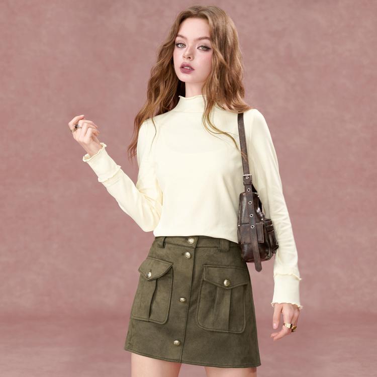妖精的口袋 2025秋季新款休闲基础百搭内搭打底衫半高领长袖T恤女