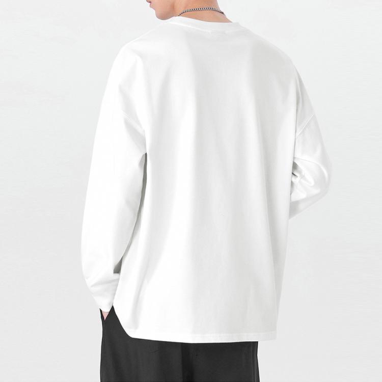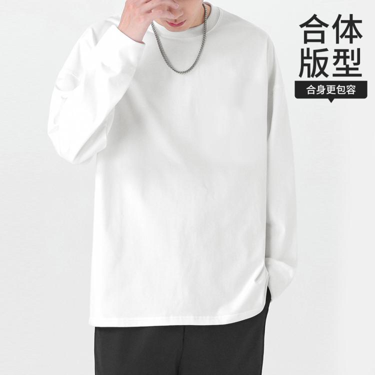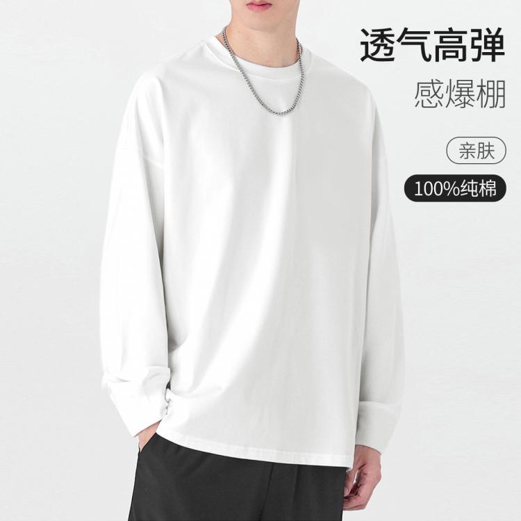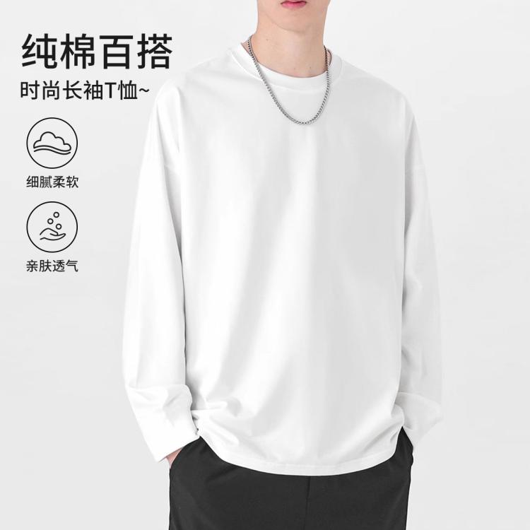 浪莎 【100%纯棉】男式长袖圆领T恤男简约百搭纯色打底上衣t恤