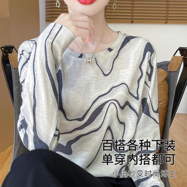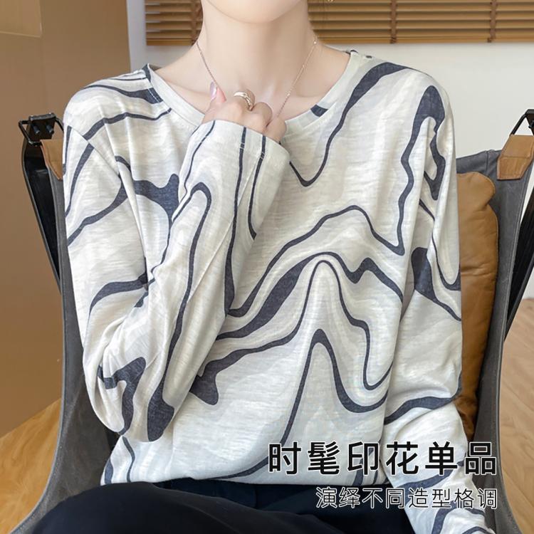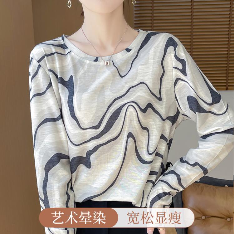 梦芭蒂 【早秋水墨国风】轻薄款打底衫女宽松舒适显瘦时尚打底外穿上衣