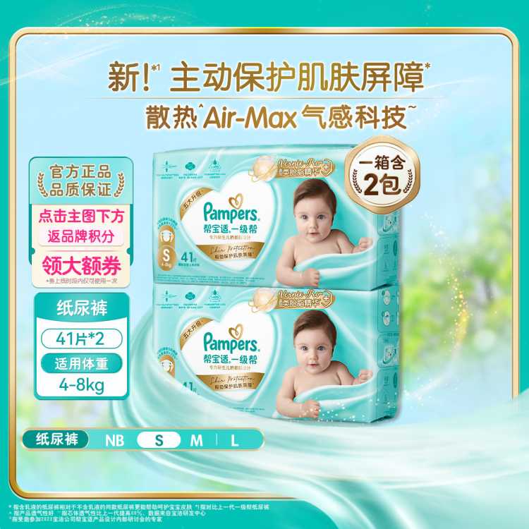 帮宝适 【超值2包】一级帮纸尿裤NB-L婴儿尿片超薄透气尿不湿小箱装