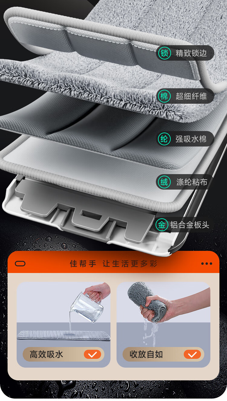 佳帮手平板拖把33cm2布家用一拖净免手洗2025拖地神器墩布拖布洗拖一体 【在售价】37.25元 【到手价】29.80元 下单链接:https://u.jd.com/0gqUtz0