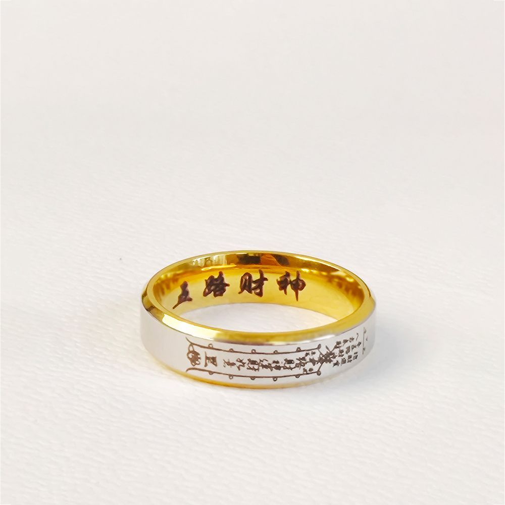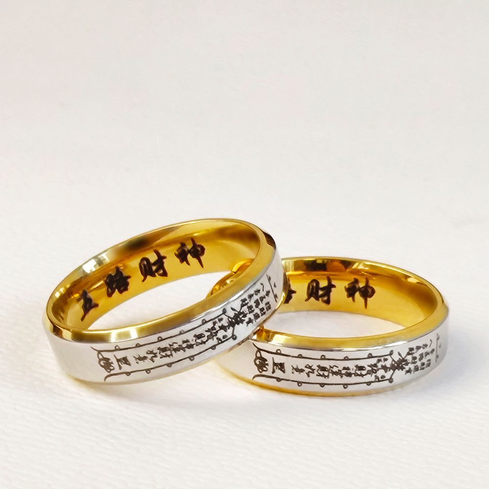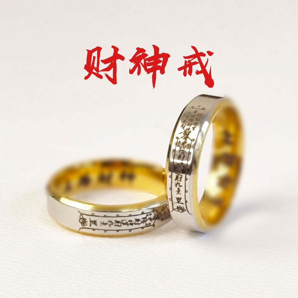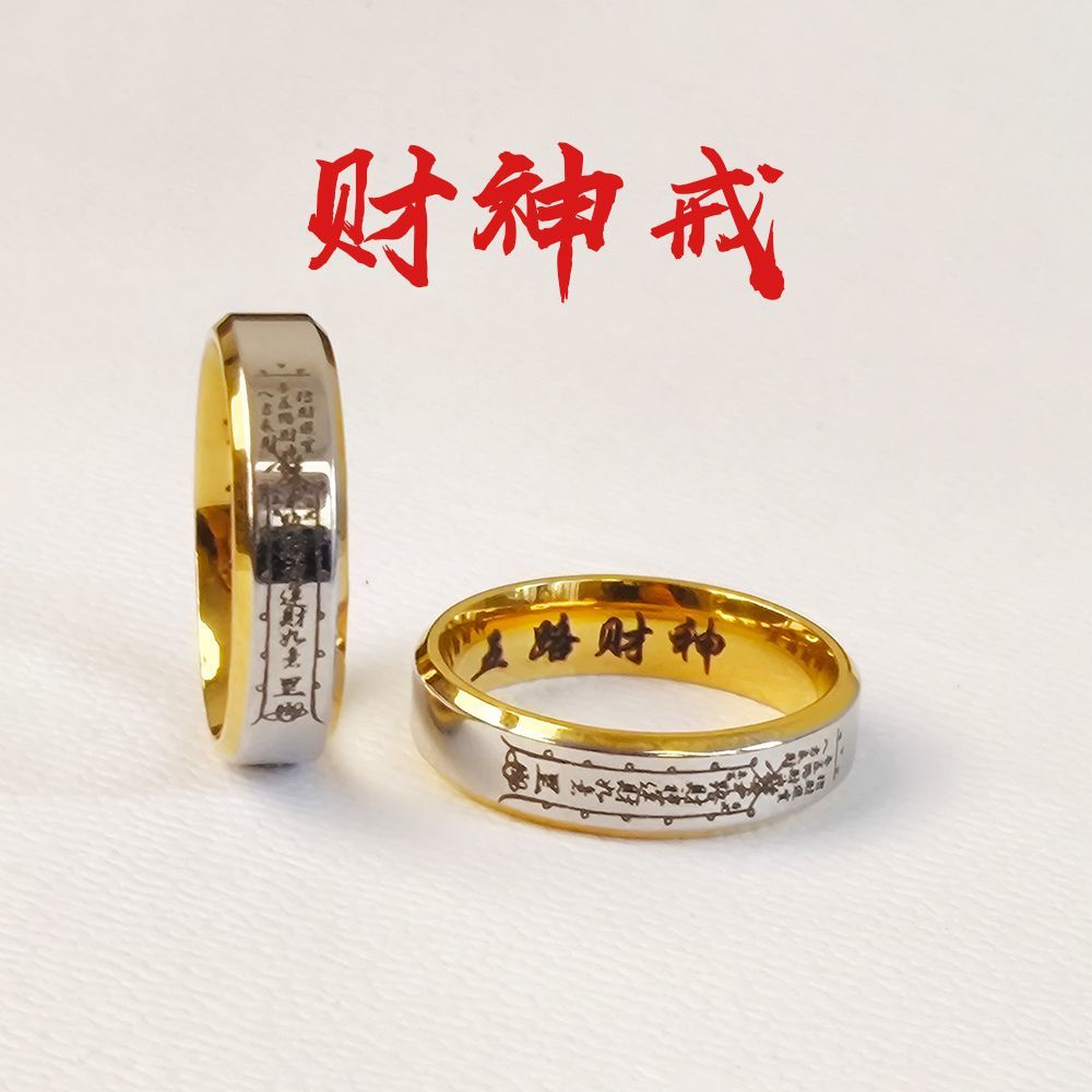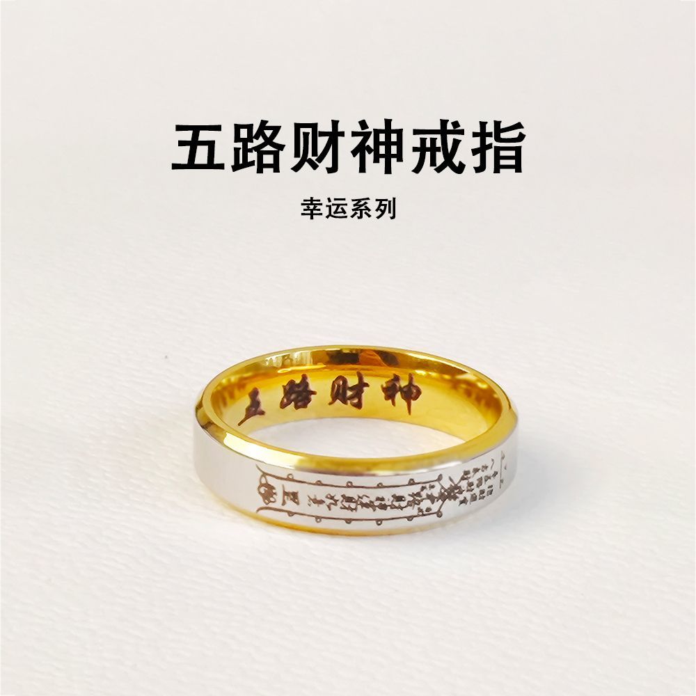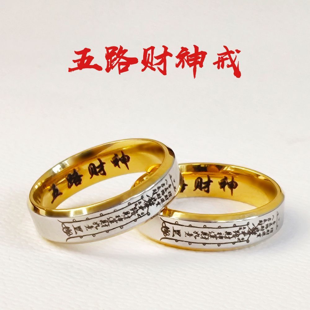 道系财神五路戒指小众复古设计男女指环钛钢戒指送礼国风不掉色