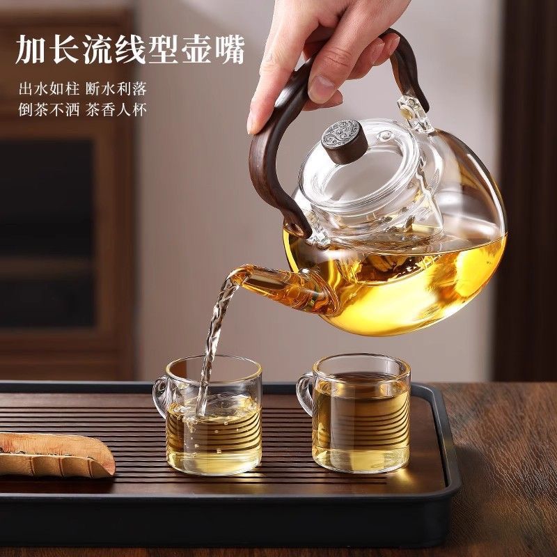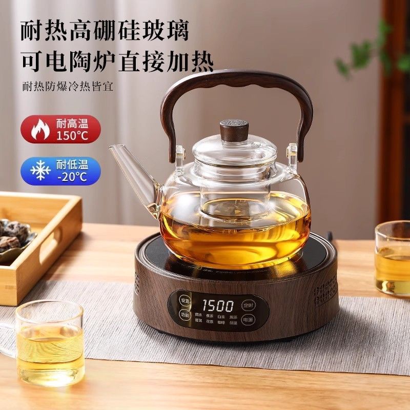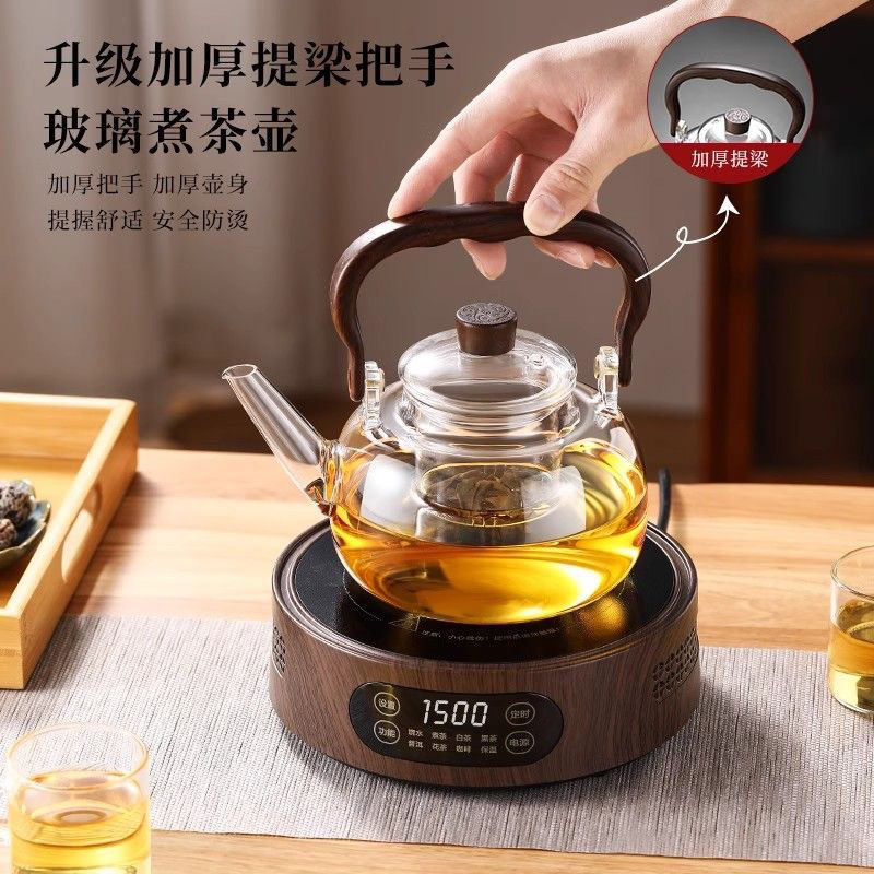 加厚新款提梁壶煮茶器玻璃茶壶茶杯套装家用高硼硅玻璃茶具电陶炉
