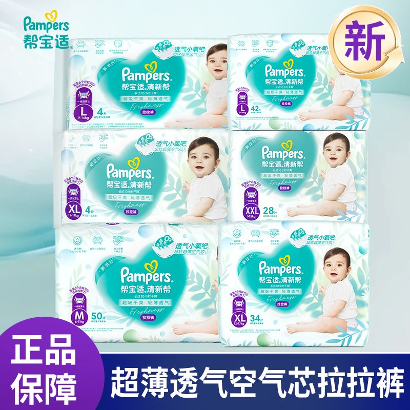 正品帮宝适清新帮拉拉裤纸尿裤M/L/XL/XXL超薄干爽尿不湿防漏