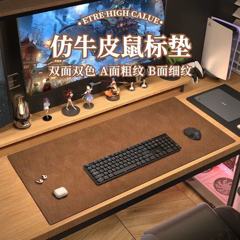仿牛皮纹桌垫鼠标垫超大号电竞级办公桌垫高级感电脑桌垫键盘垫子