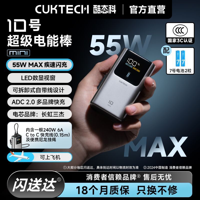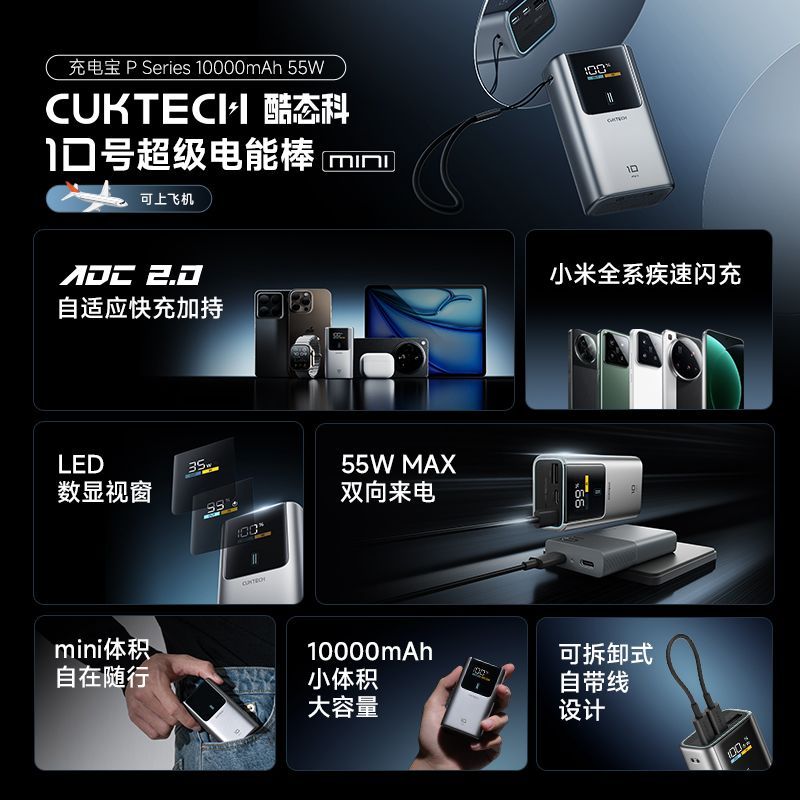 CUKTECH酷态科10号MINI充电宝10000毫安移动电源快充适用小米苹果