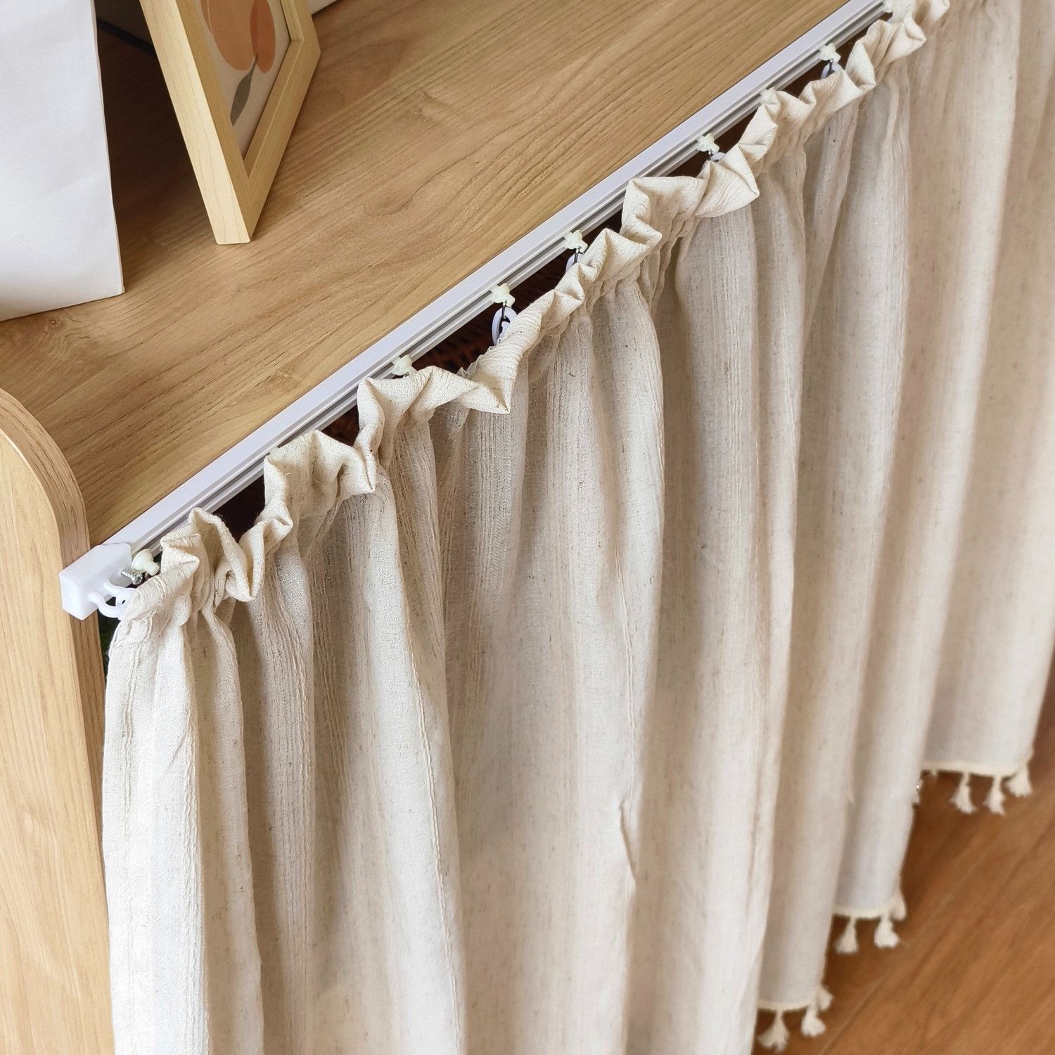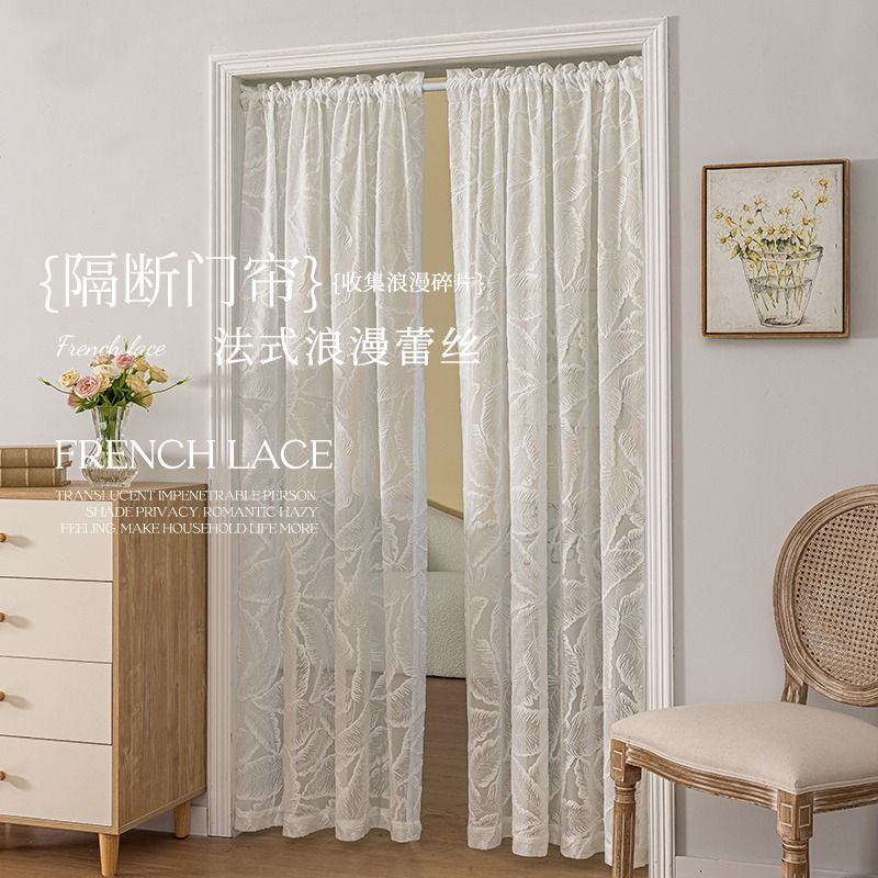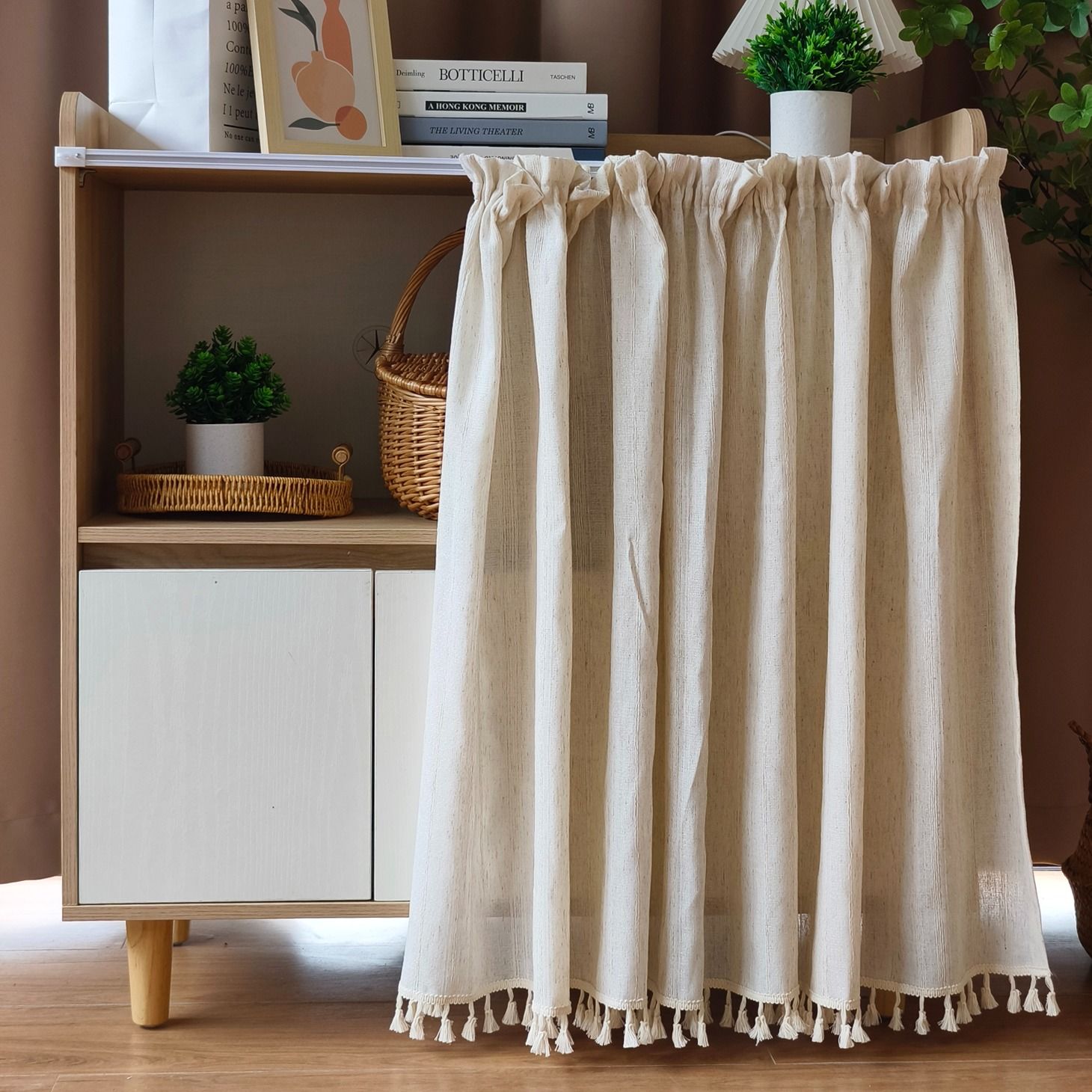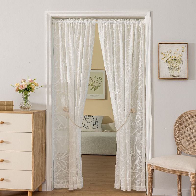 条纹日式家用门帘棉麻窗帘隔断阳台飘窗厨房卧室遮光透气蕾丝纱帘