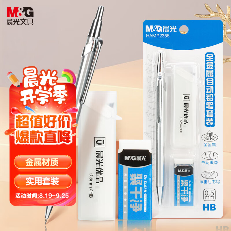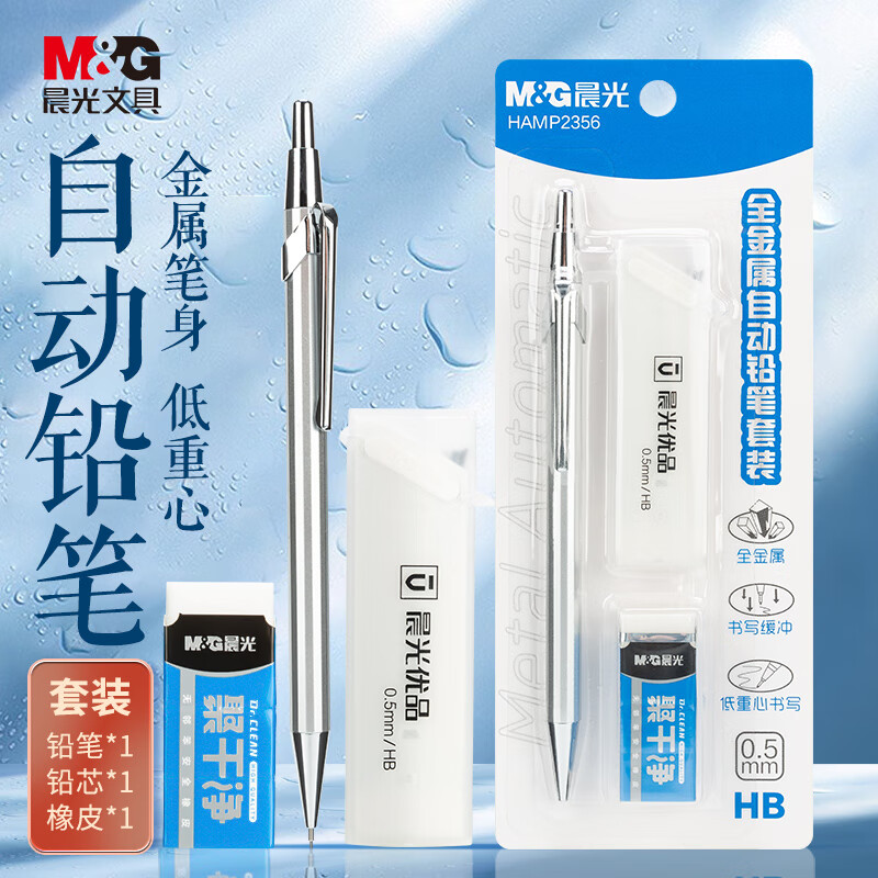 晨光(M&G)文具0.5HB金属考试自动铅笔套装(自动铅笔+聚干净橡皮 20支铅芯)学生考试书写做题可用HAMP2356 【在售价】6.10元 【到手价】6.10元 下单链接:https://u.jd.com/YD00Hun