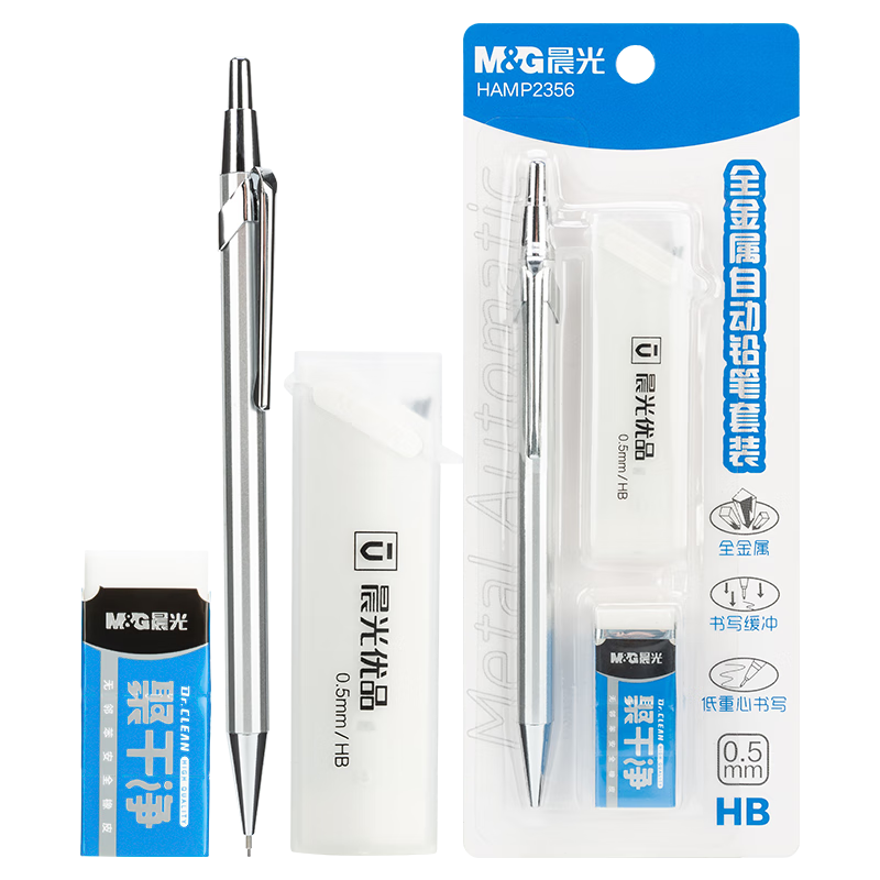 晨光(M&G)文具0.5HB金属考试自动铅笔套装(自动铅笔+聚干净橡皮 20支铅芯)学生考试书写做题可用HAMP2356
