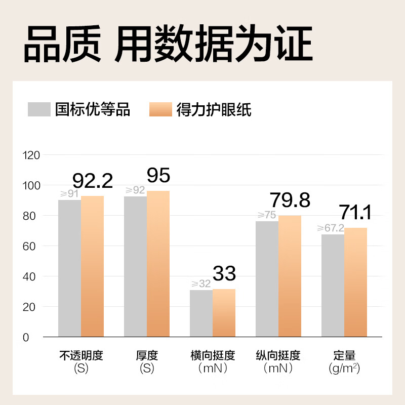 得力(deli)本色护眼A4打印纸 70g500张一包 单包复印纸 学生作业草稿纸 双面低白ZF6007【护眼本色】