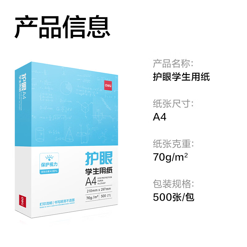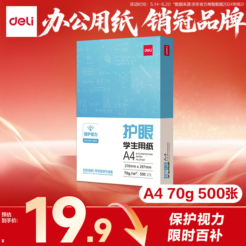 得力(deli)本色护眼A4打印纸 70g500张一包 单包复印纸 学生作业草稿纸 双面低白ZF6007【护眼本色】 【在售价】19.90元 【到手价】19.90元 下单链接:https://u.jd.com/YDpltUZ