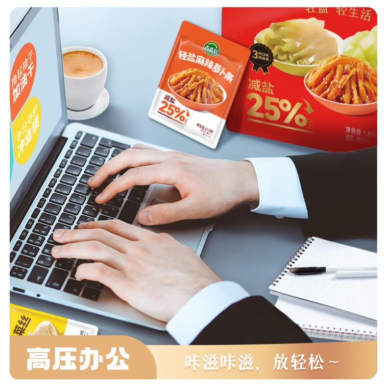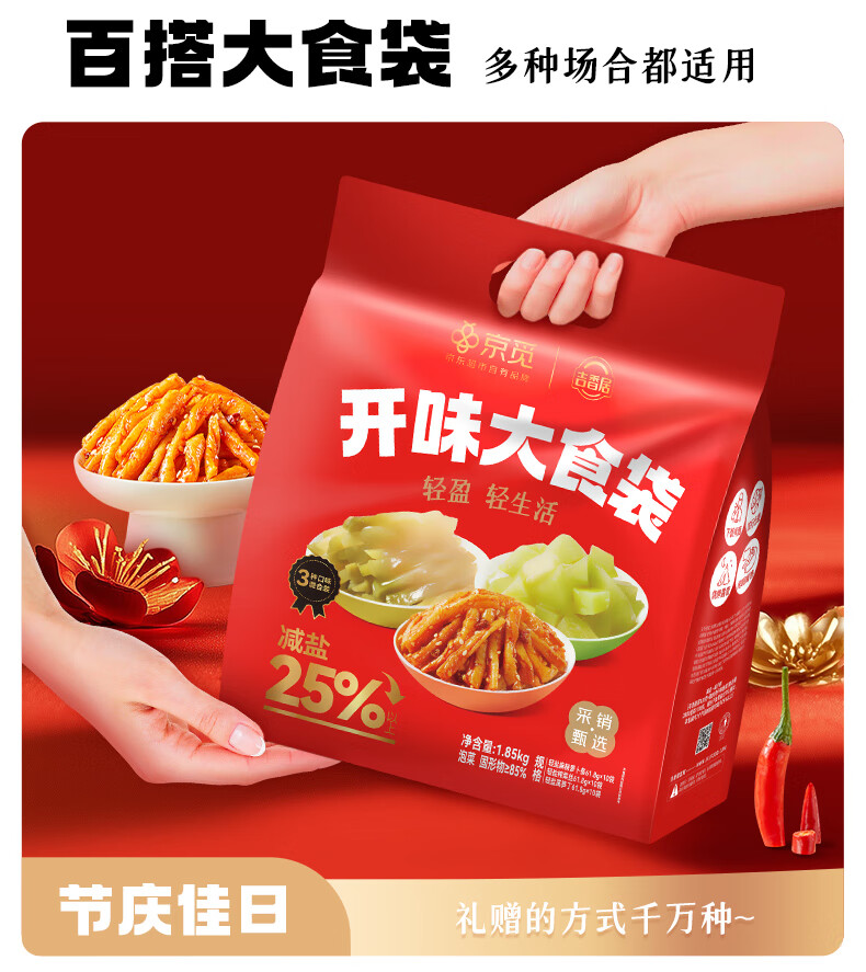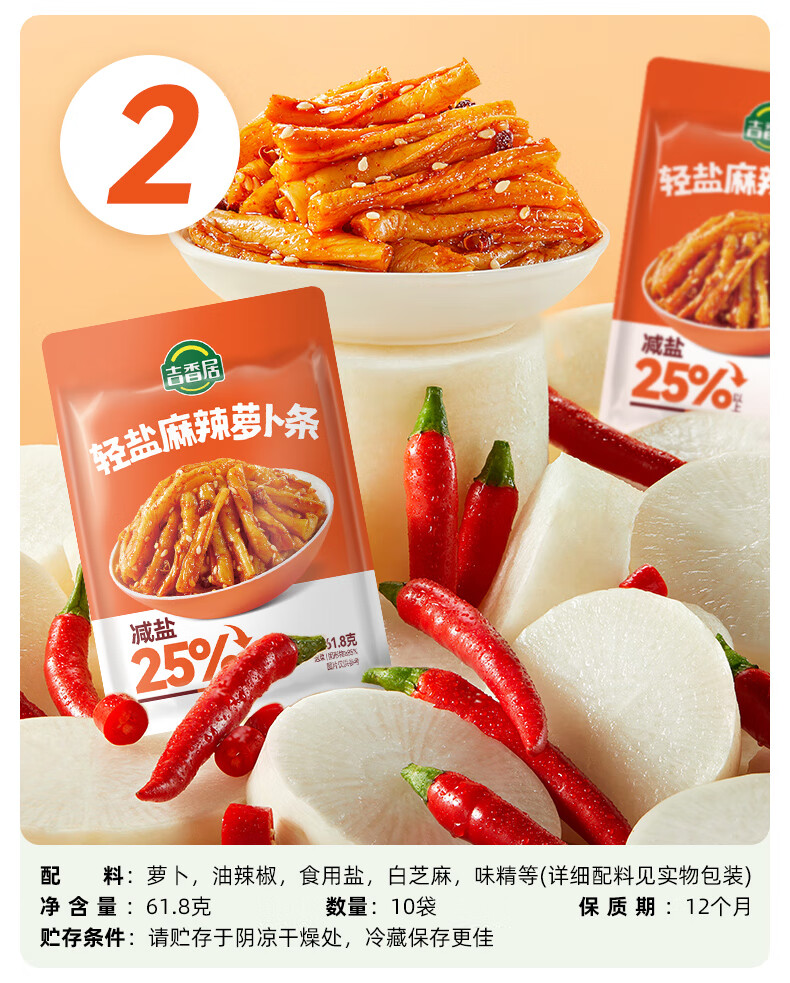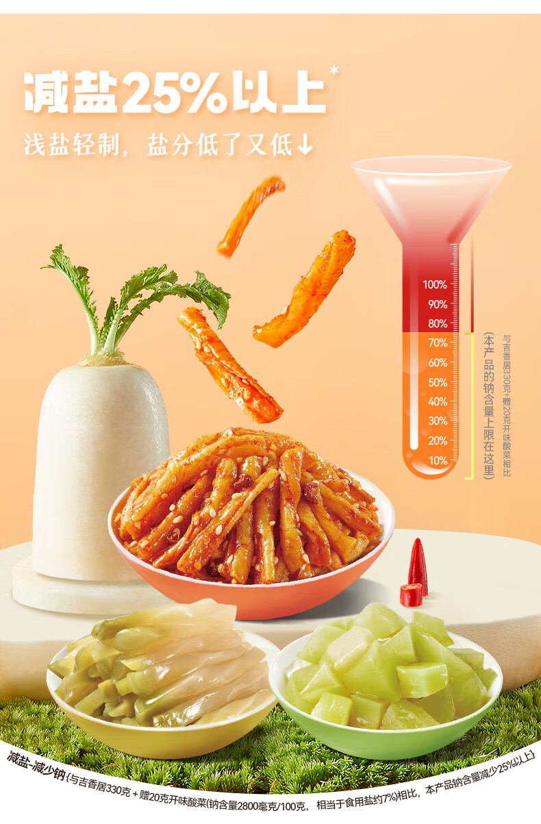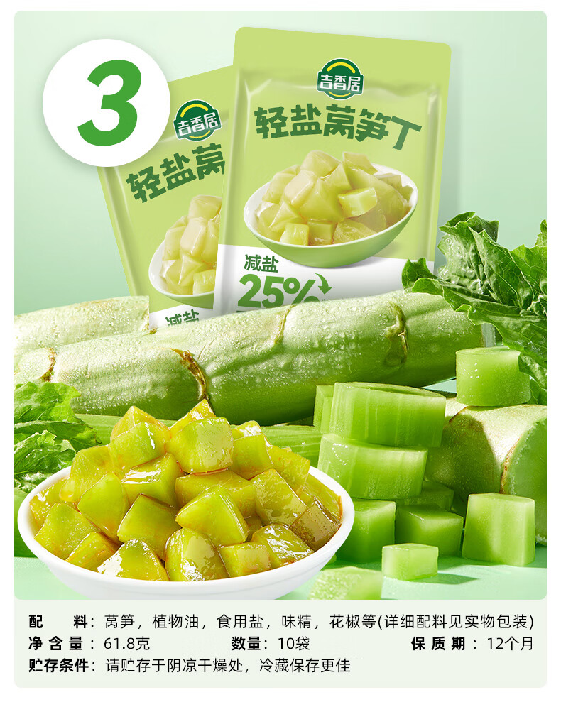 吉香居&京觅 开味大食袋【减盐25%】轻盐榨菜萝卜干莴笋丁61.8g*30 【在售价】29.90元 【到手价】29.90元 下单链接:https://u.jd.com/0OQbd8x