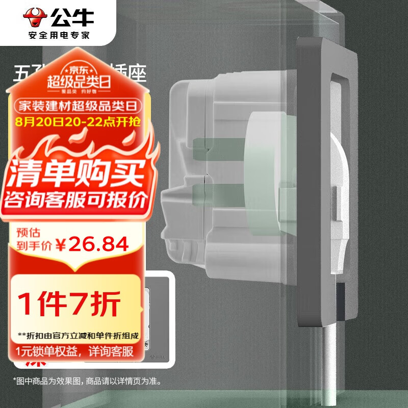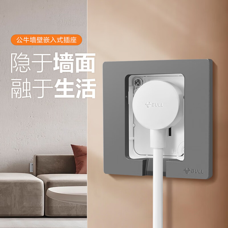 公牛(BULL)开关插座 嵌入式插座可调节空调冰箱隐藏插座GTBZ223灰色五孔10A 【在售价】38.40元 【到手价】26.84元 下单链接:https://u.jd.com/YaB8ool