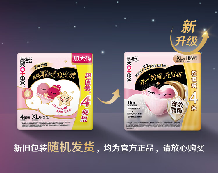高洁丝【有效隔菌】软心夜安裤XL号32条120-180斤裤型卫生巾安睡裤自营