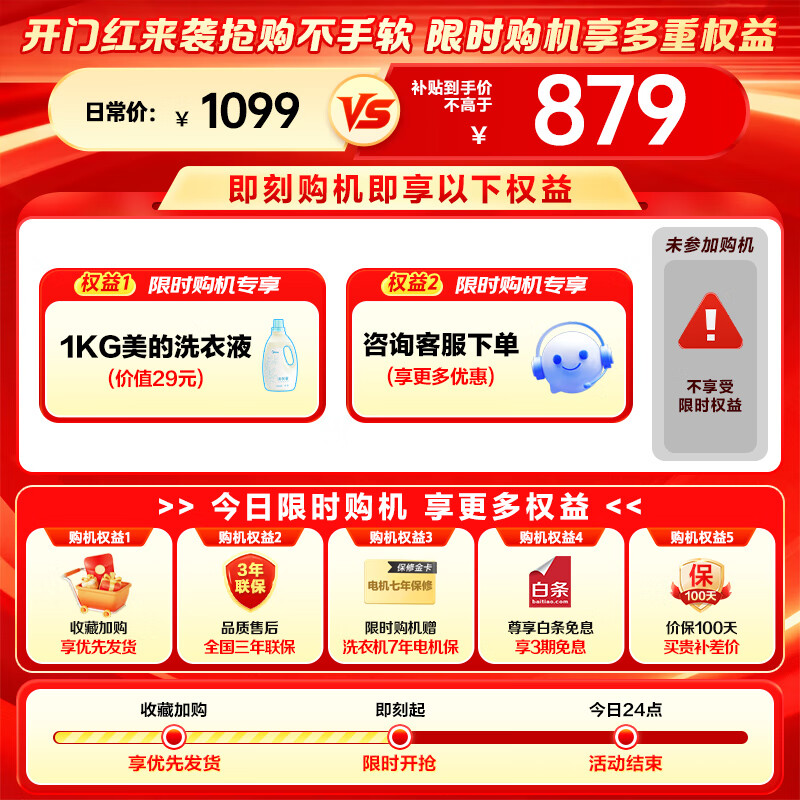 美的(Midea)全自动滚筒洗衣机 10公斤家用大容量MG100V36T变频电机一级能效1.1高洗净比 蒸汽除菌 家电国补20% MG100V36T