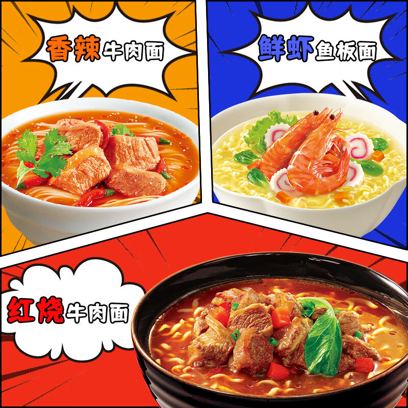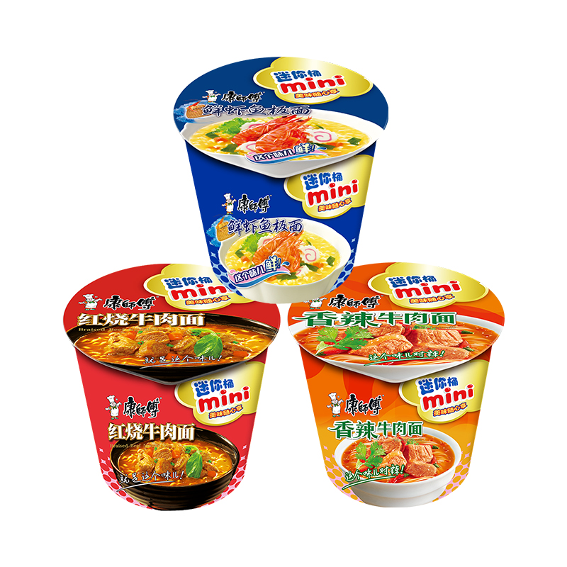 康师傅方便面 迷你杯 红烧+香辣+鲜虾60g*12 杯 泡面整箱速食 休闲零食