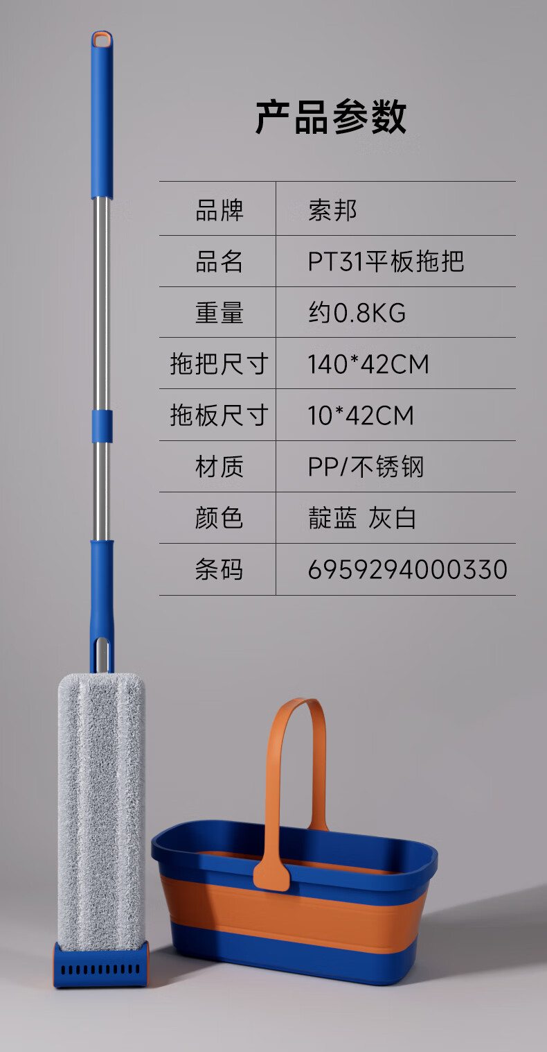 索邦平板拖把42cm6布家用一拖净免手洗2025拖地神器带桶一套墩布拖布 【在售价】89.90元 【到手价】69.90元 下单链接:https://u.jd.com/0G6Nzig