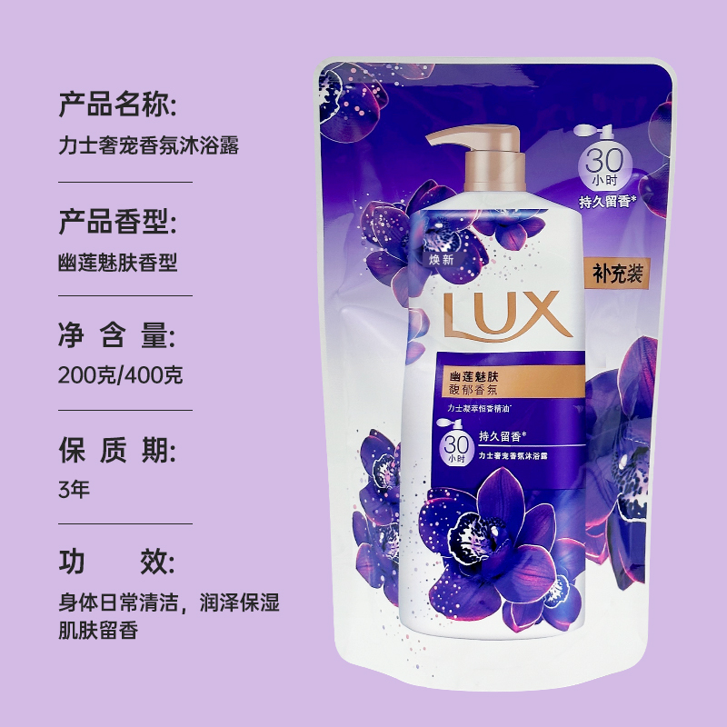 力士香氛沐浴乳桃花幽莲魅肤袋装200g樱花滋润保湿留香沐浴露1kg