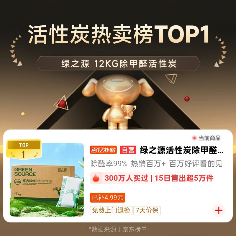 绿之源活性炭除甲醛碳包12kg360室内装修新房家用去除甲醛清除剂异味 【在售价】74.90元 【到手价】59.90元 下单链接:https://u.jd.com/06a1B7E