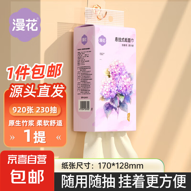 漫花悬挂式抽纸巾920张大包家用批发厕所卫生纸 4层1提920张【试用装】 【在售价】4.00元 【到手价】4.00元 下单链接:https://u.jd.com/YDpXLZT