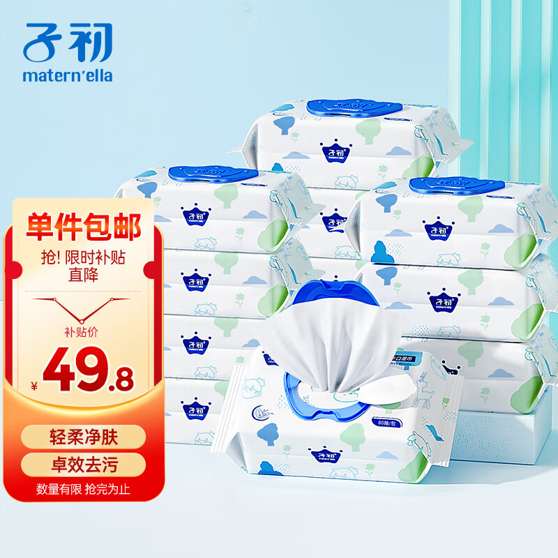 子初婴儿湿纸巾 宝宝手口柔湿巾 儿童擦脸绵柔湿巾80抽12包 【在售价】49.80元 【到手价】46.80元 下单链接:https://u.jd.com/YapBYys
