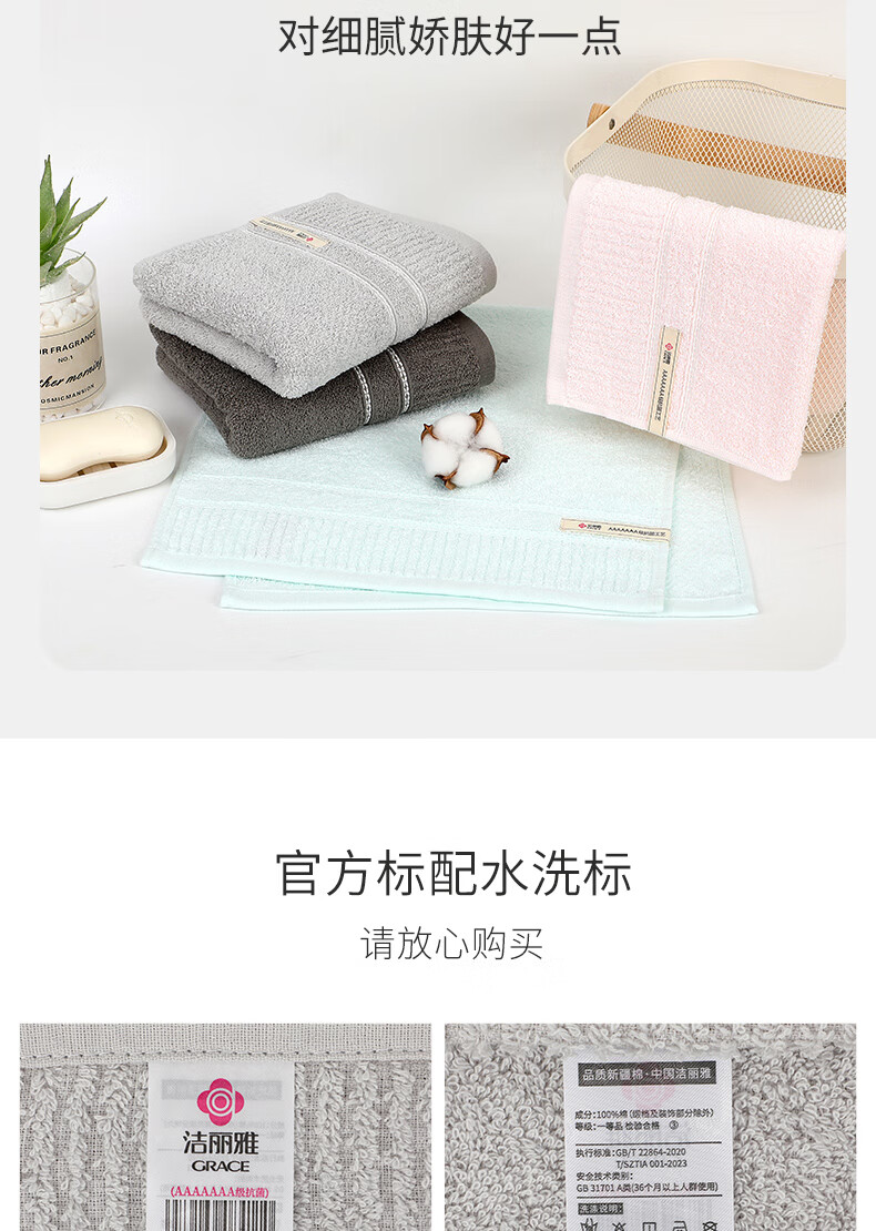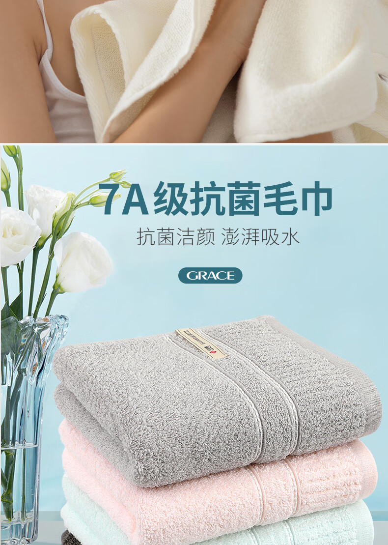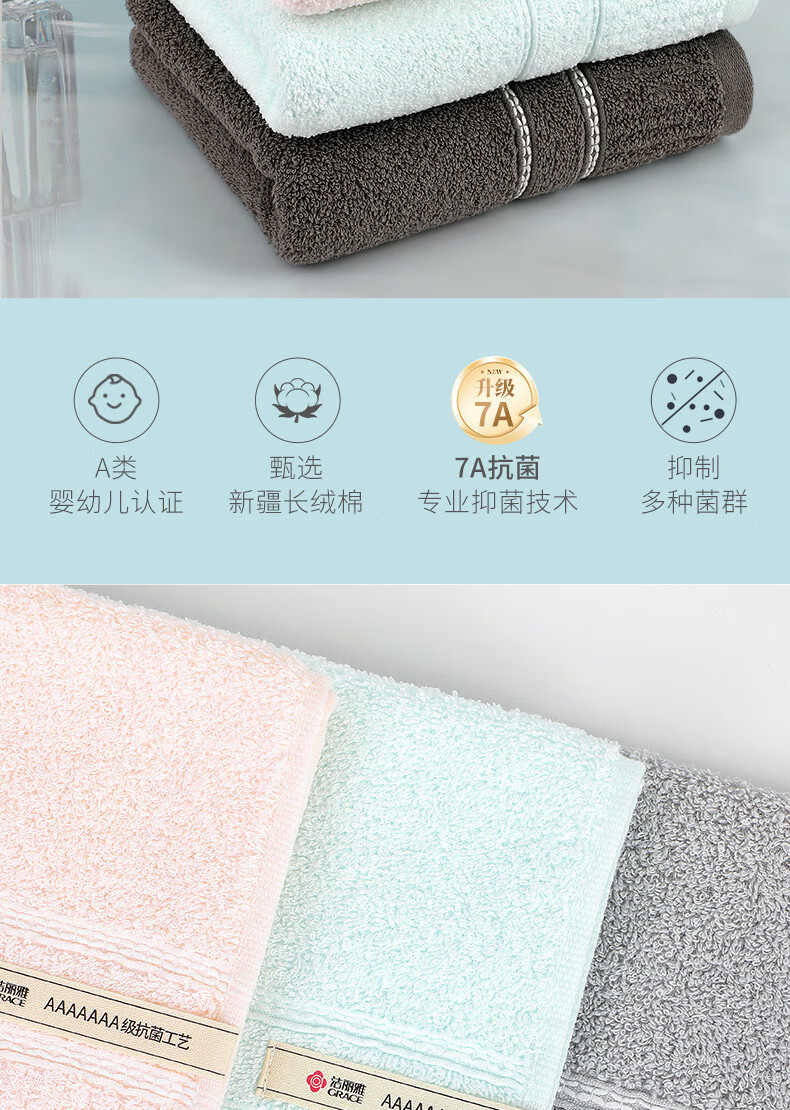 洁丽雅(Grace)7A级抗菌纯棉毛巾 柔软吸水新疆长绒棉洗脸巾2条装深灰+兰 【在售价】26.90元 【到手价】19.90元 下单链接:https://u.jd.com/0rOrW4e