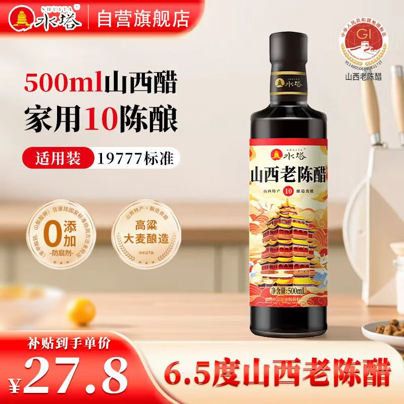 水塔山西老陈醋6.5度500ml 10陈酿【19777标准】家用食醋凉拌调味蘸料 【在售价】27.80元 【到手价】27.80元 下单链接:https://u.jd.com/0r1uYBN