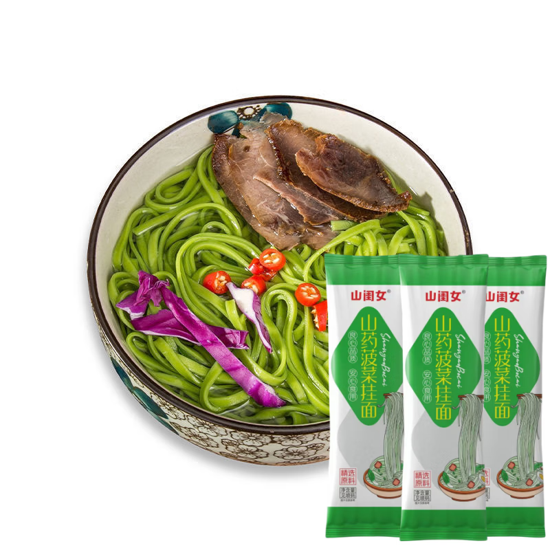 【渠道专享】怀山药菠菜龙须挂面杂粮面减脂无糖早餐饱腹速食面条 山药菠菜挂面100克*2袋