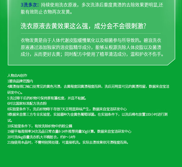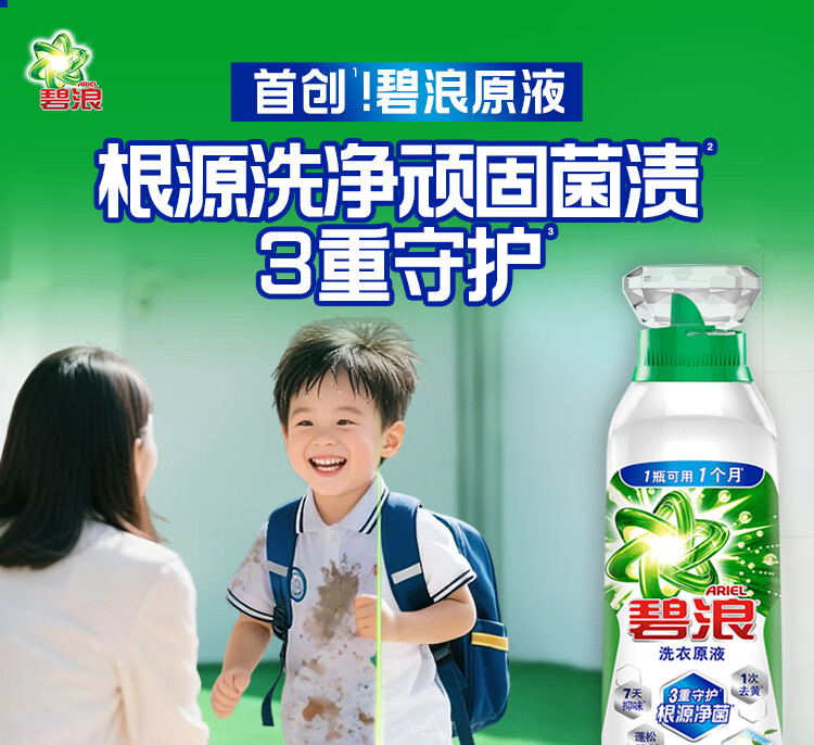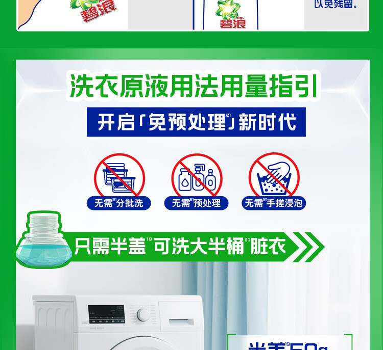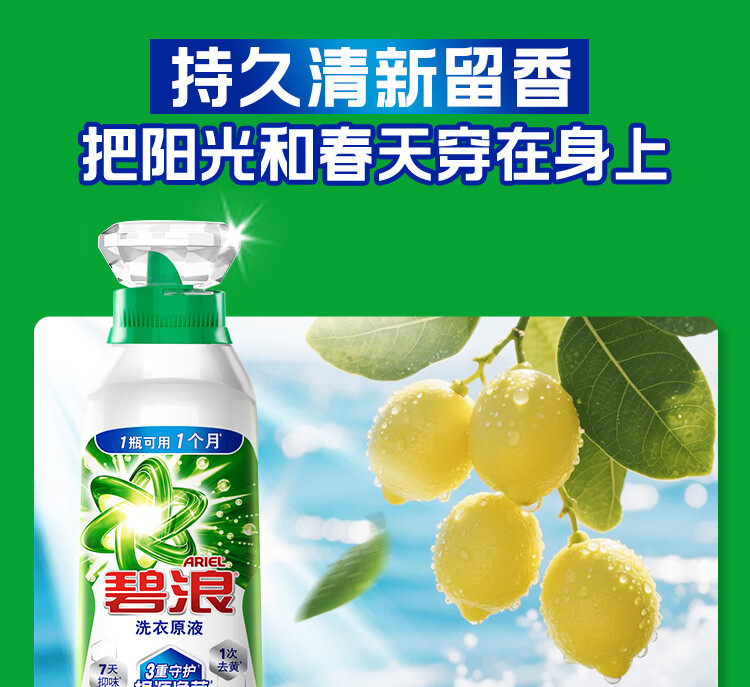 碧浪洗衣原液1次去黄除菌除螨留香2.4kg(800g瓶*3)洗衣液家庭装