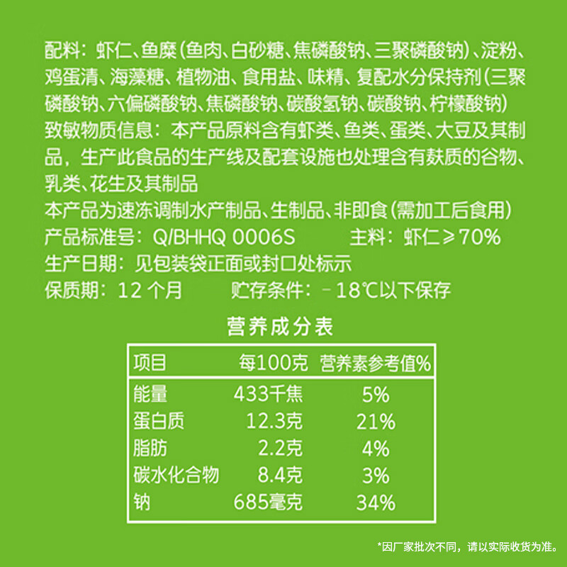 安井 虾滑 500g 虾仁含量高 火锅麻辣烫食材 速食熟食海鲜水产
