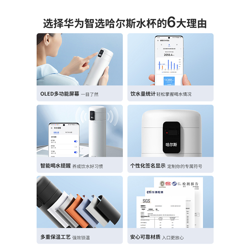 鸿蒙智选哈尔斯智能保温杯男女316L不锈钢温度显示高颜值保冷水杯