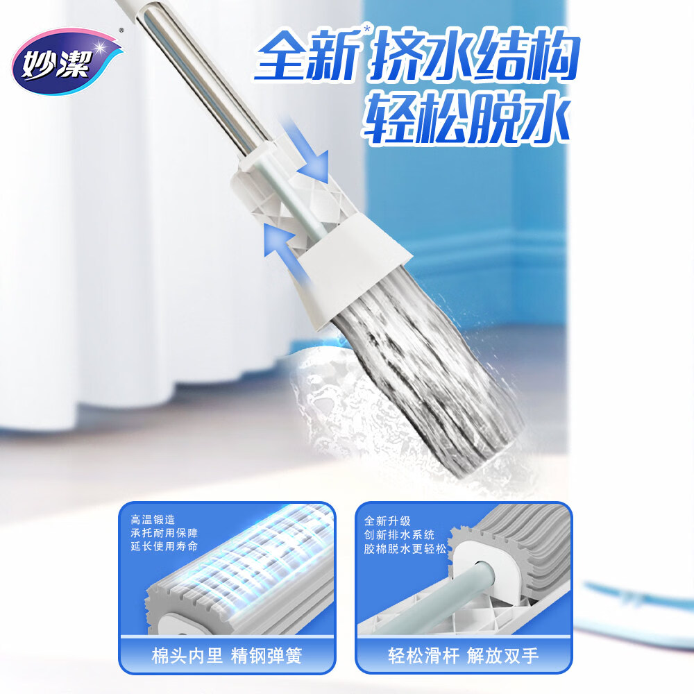 妙洁胶棉拖把33cm杆长148共1头推拉式大懒人家用一拖净免手洗海绵吸水 【在售价】39.50元 【到手价】37.50元 下单链接:https://u.jd.com/0g1rVEs
