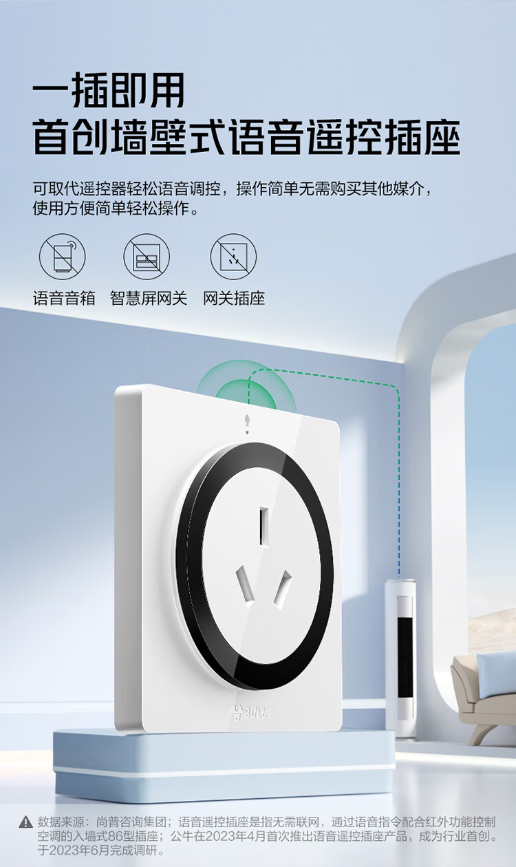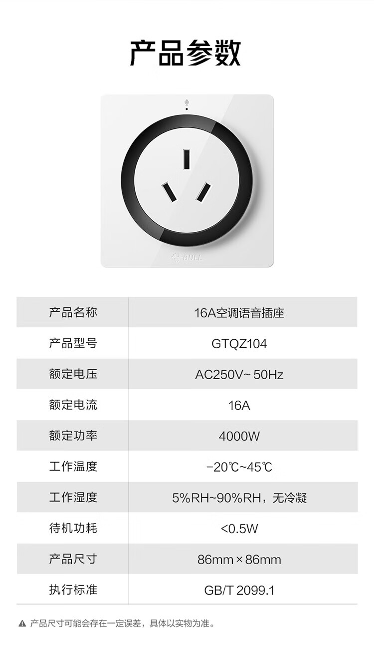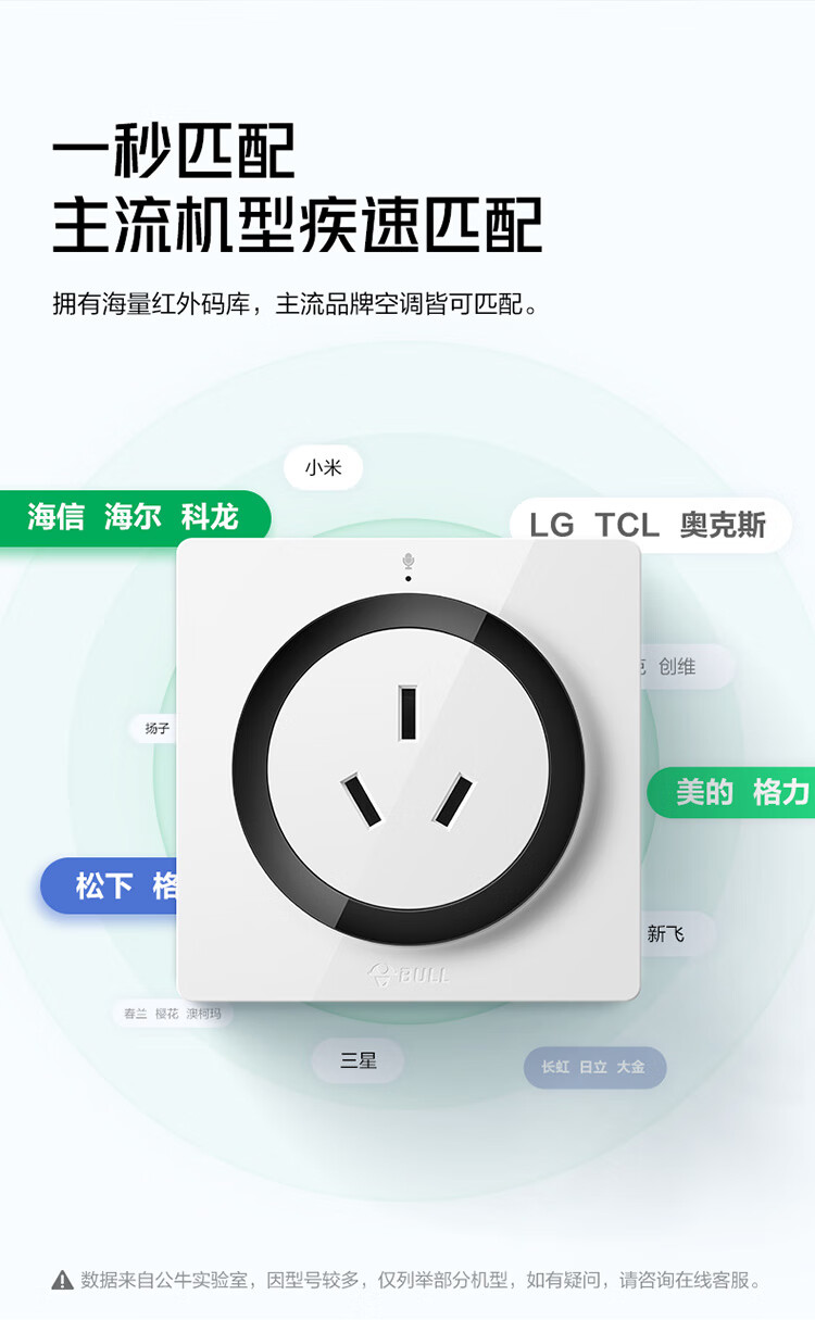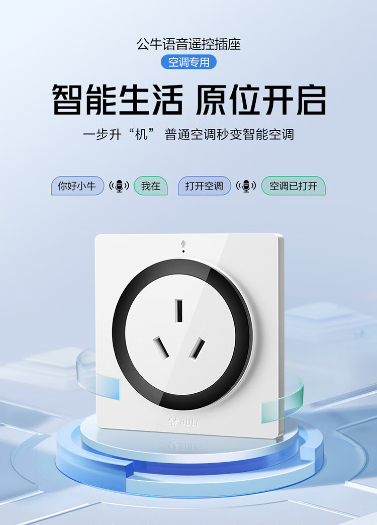 公牛(BULL)开关插座 语音插座 16A三孔红外语音控制智能空调插座白色GTQZ104