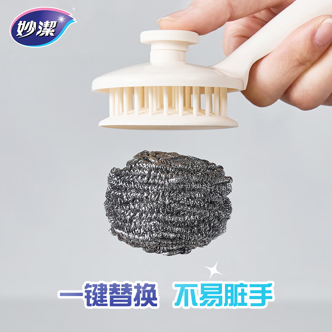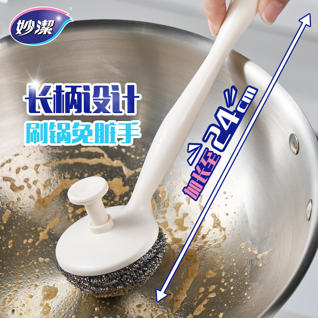 妙洁钢丝球锅刷带把手类丝瓜络清洁球铁刷锅神器1长柄+6只钢丝球 【在售价】12.90元 【到手价】11.90元 下单链接:https://u.jd.com/0O1MUb6