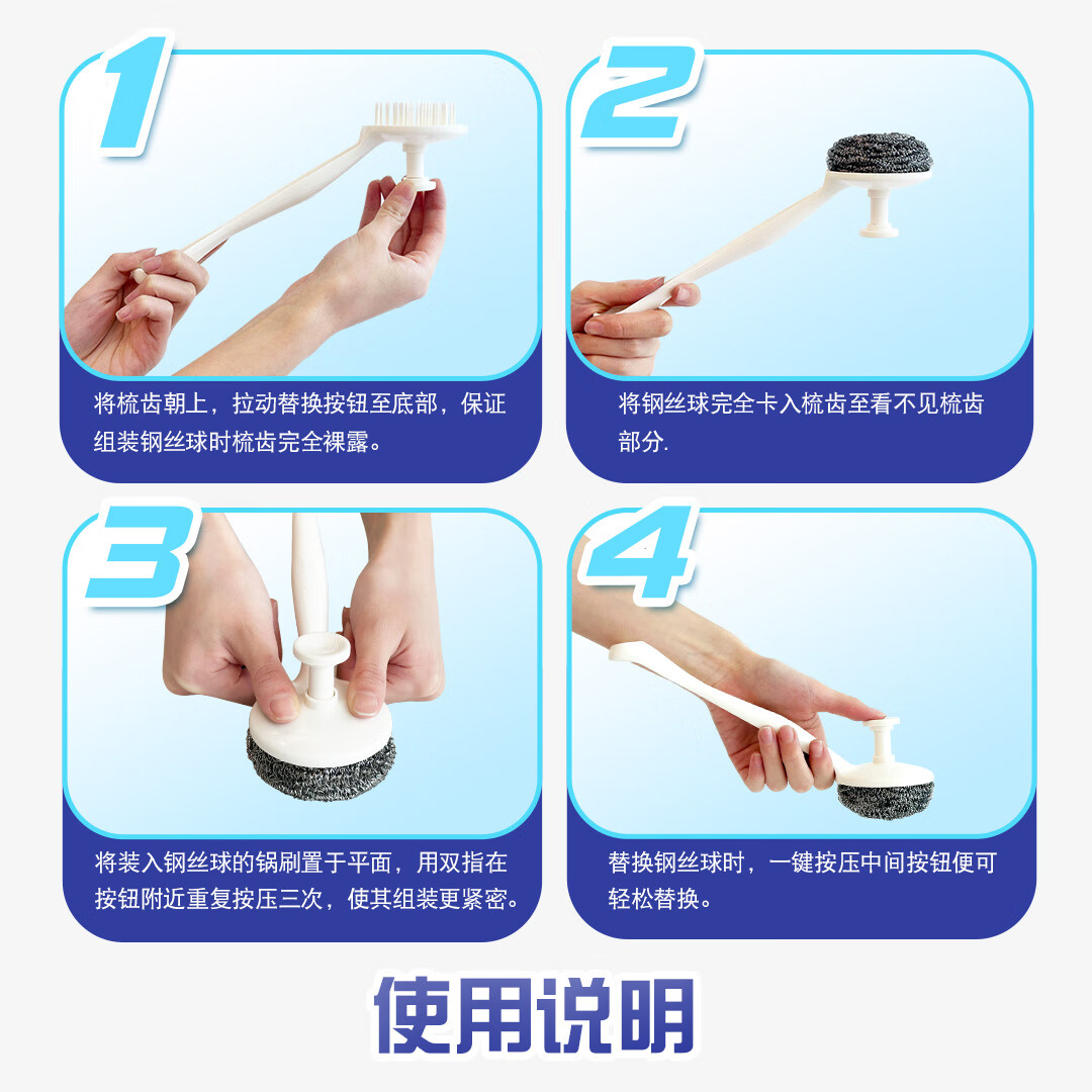 妙洁钢丝球锅刷带把手类丝瓜络清洁球铁刷锅神器1长柄+6只钢丝球