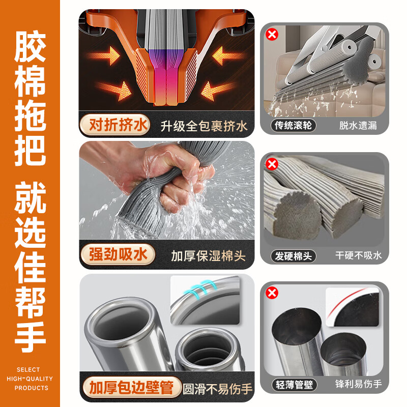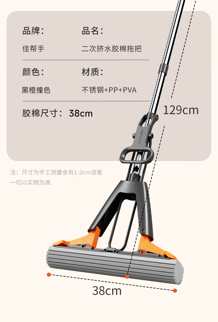 佳帮手海绵胶棉拖把38cm2头家用一拖净免手洗2025拖地神器吸水墩布拖布 【在售价】42.25元 【到手价】33.80元 下单链接:https://u.jd.com/0agCm6o