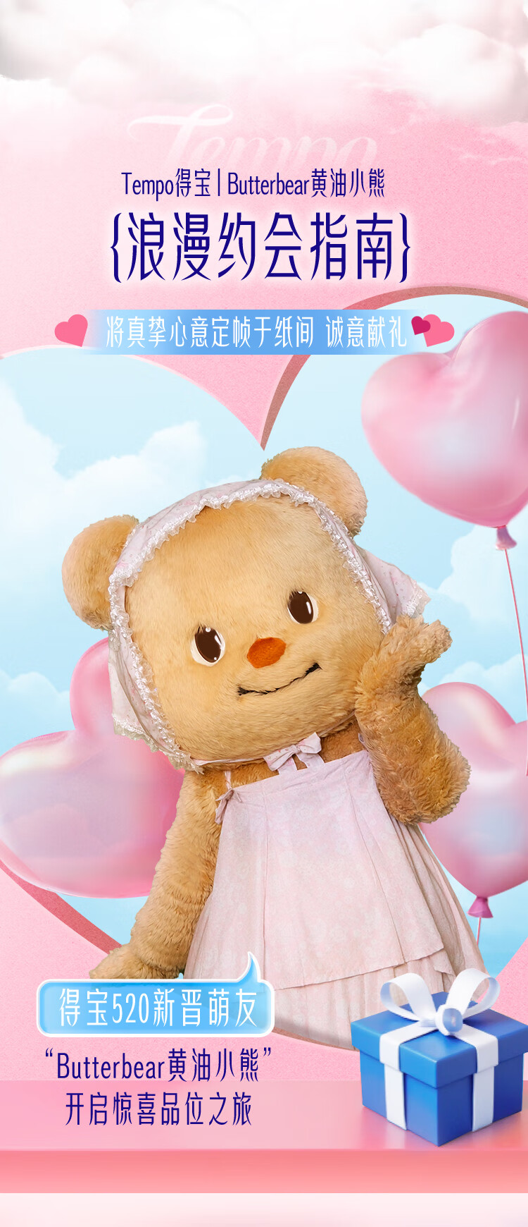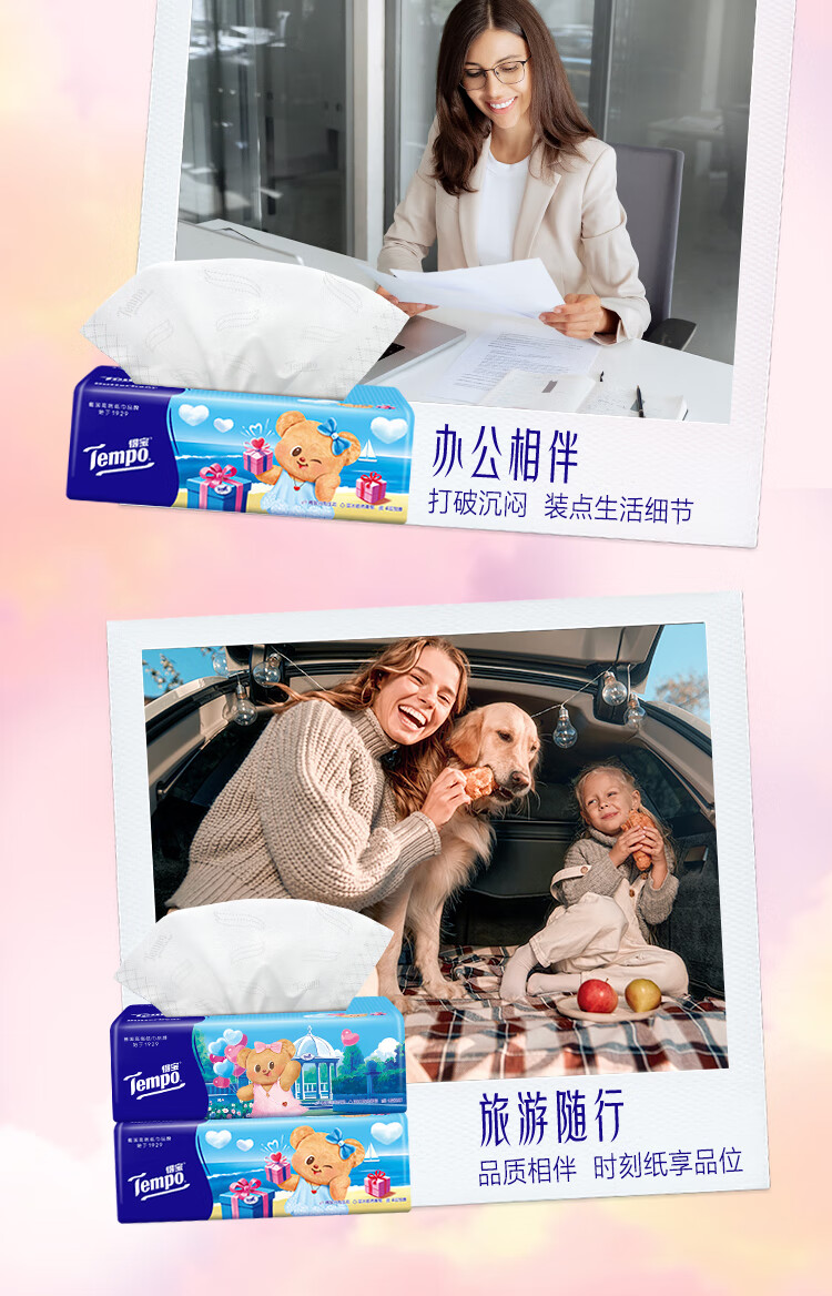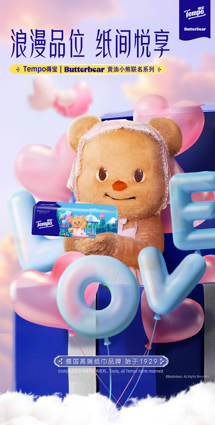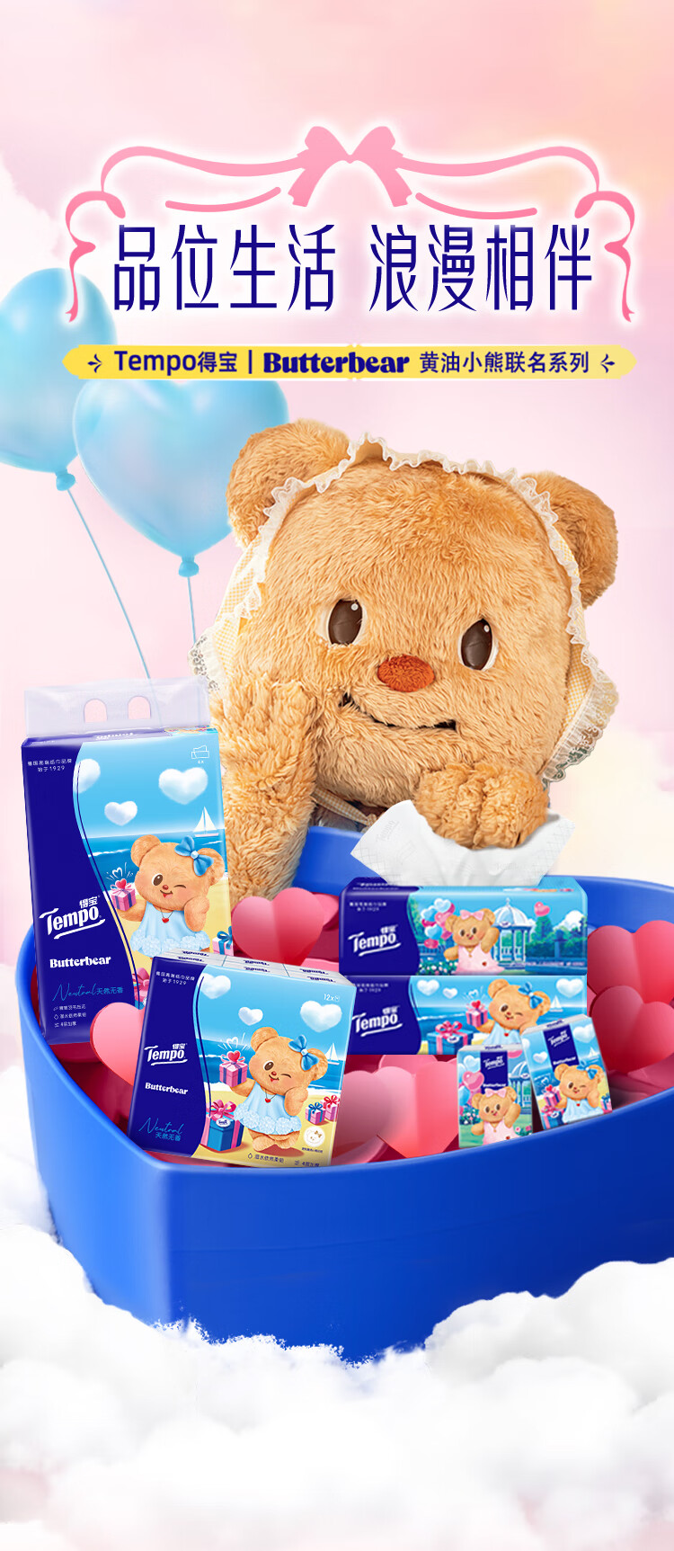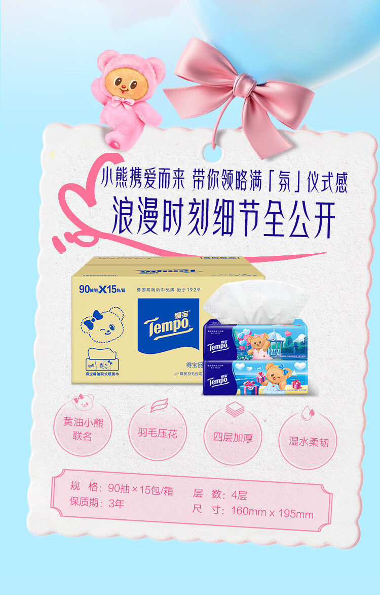 得宝(TEMPO)抽纸 黄油小熊心动限定款 4层90抽*15包 抽取式面巾纸 餐巾纸