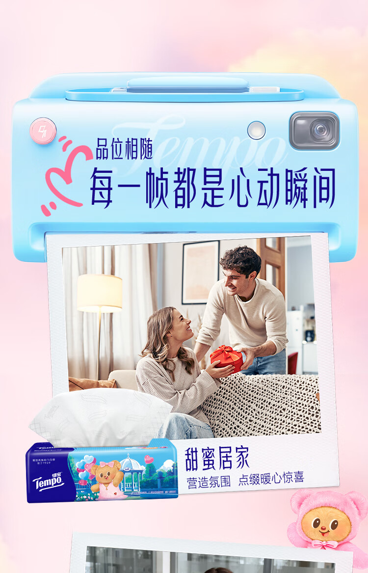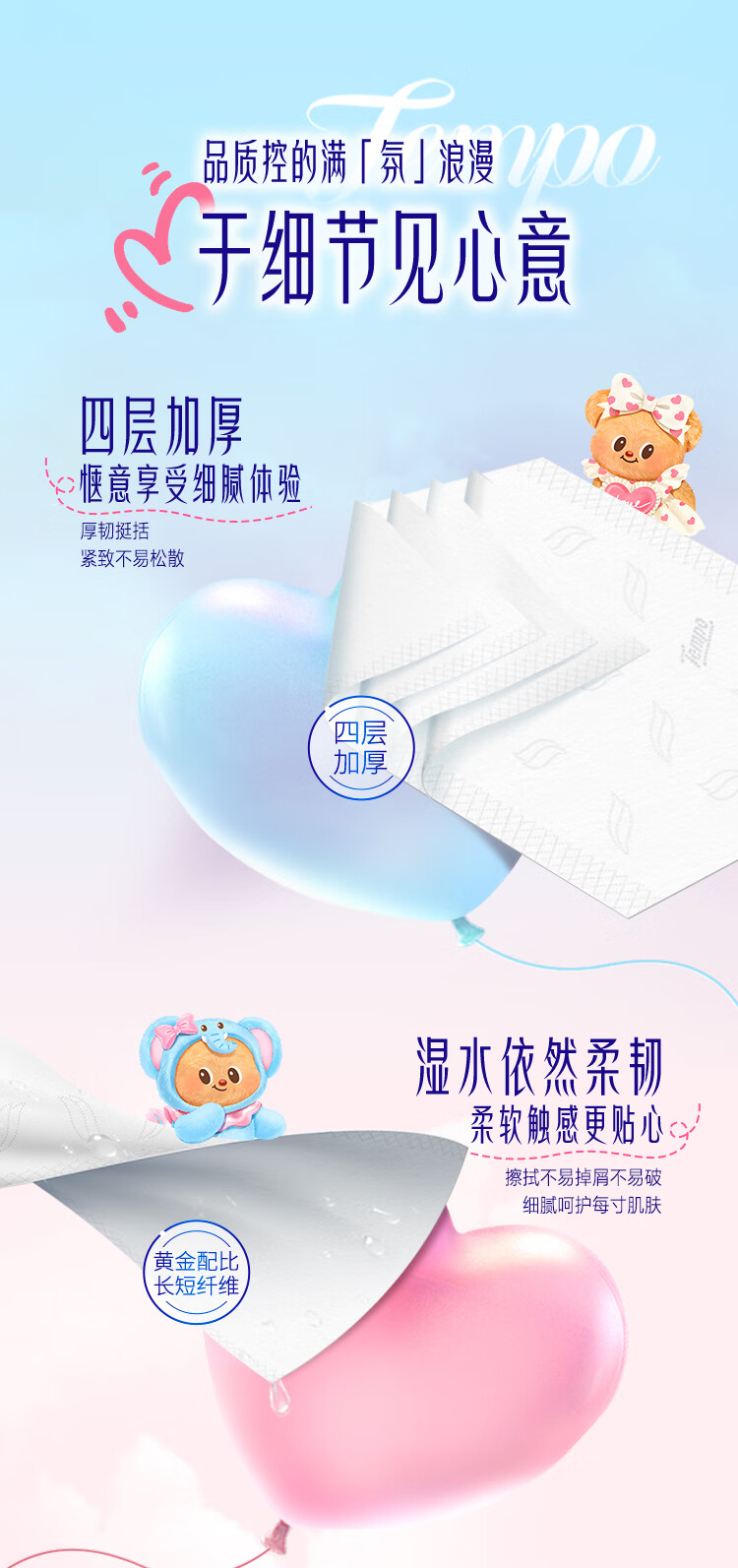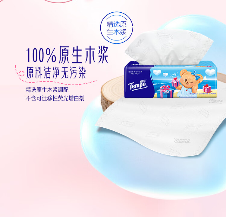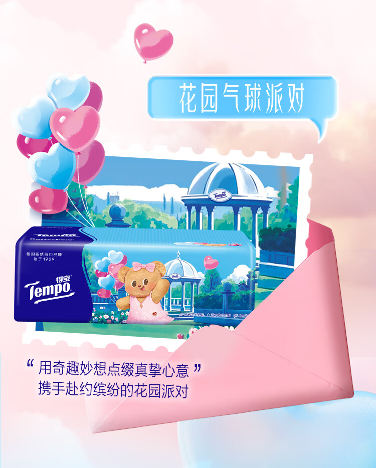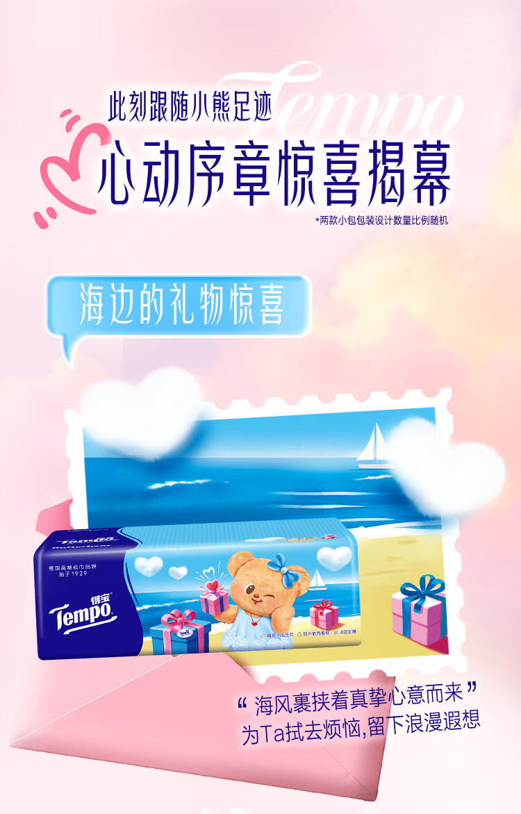 得宝(TEMPO)抽纸 黄油小熊心动限定款 4层90抽*15包 抽取式面巾纸 餐巾纸