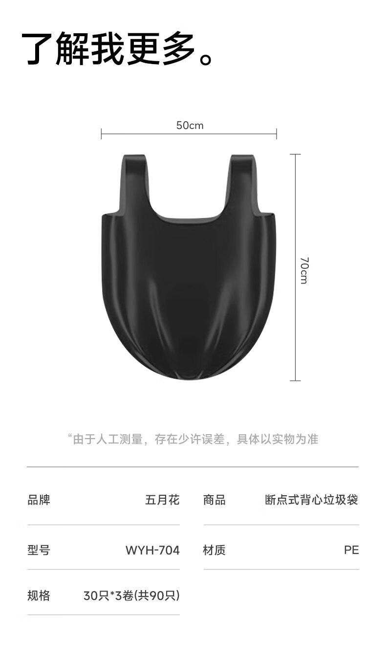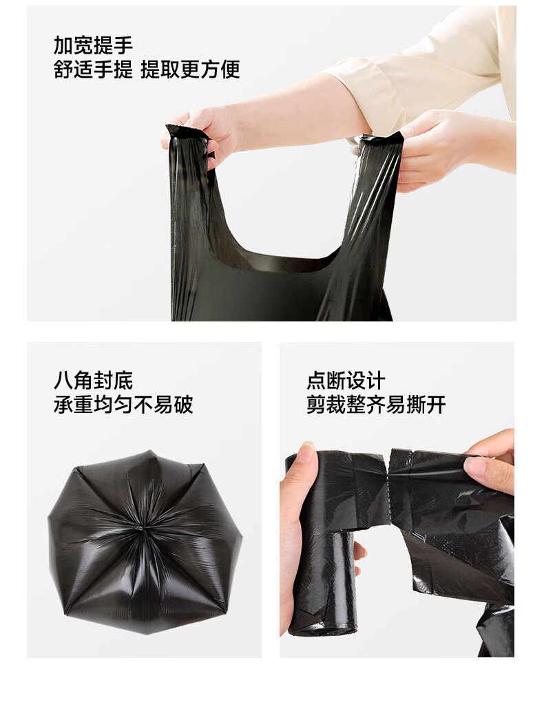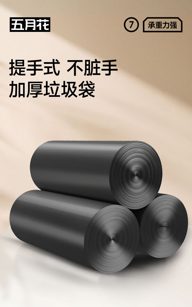 五月花背心垃圾袋共90只50*70CM点断式车载家用厨房厕所黑色垃圾袋 【在售价】13.90元 【到手价】12.90元 下单链接:https://u.jd.com/01QSkBw