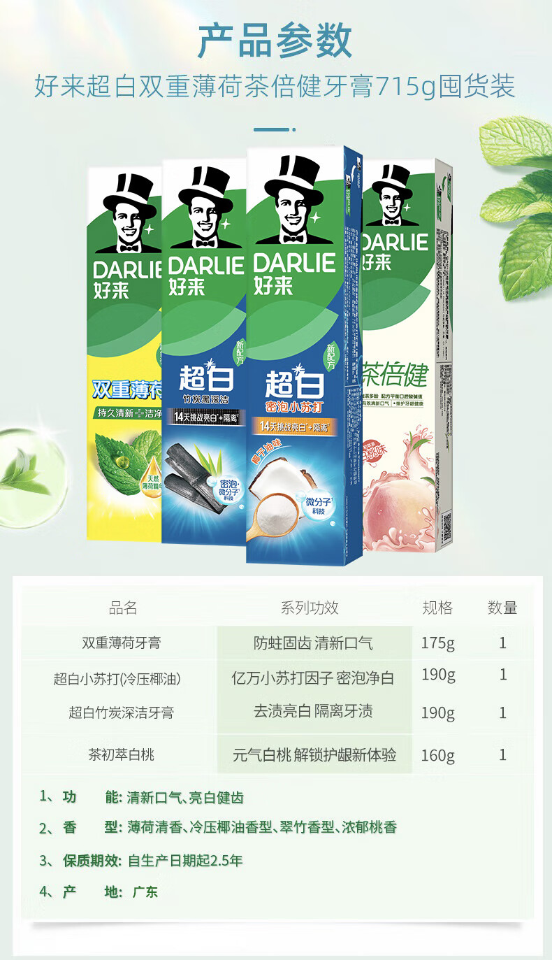 好来(原黑人)超白小苏打薄荷茶倍健牙膏清新口气 美白护龈4支715g 【在售价】53.00元 【到手价】37.75元 下单链接:https://u.jd.com/068170P